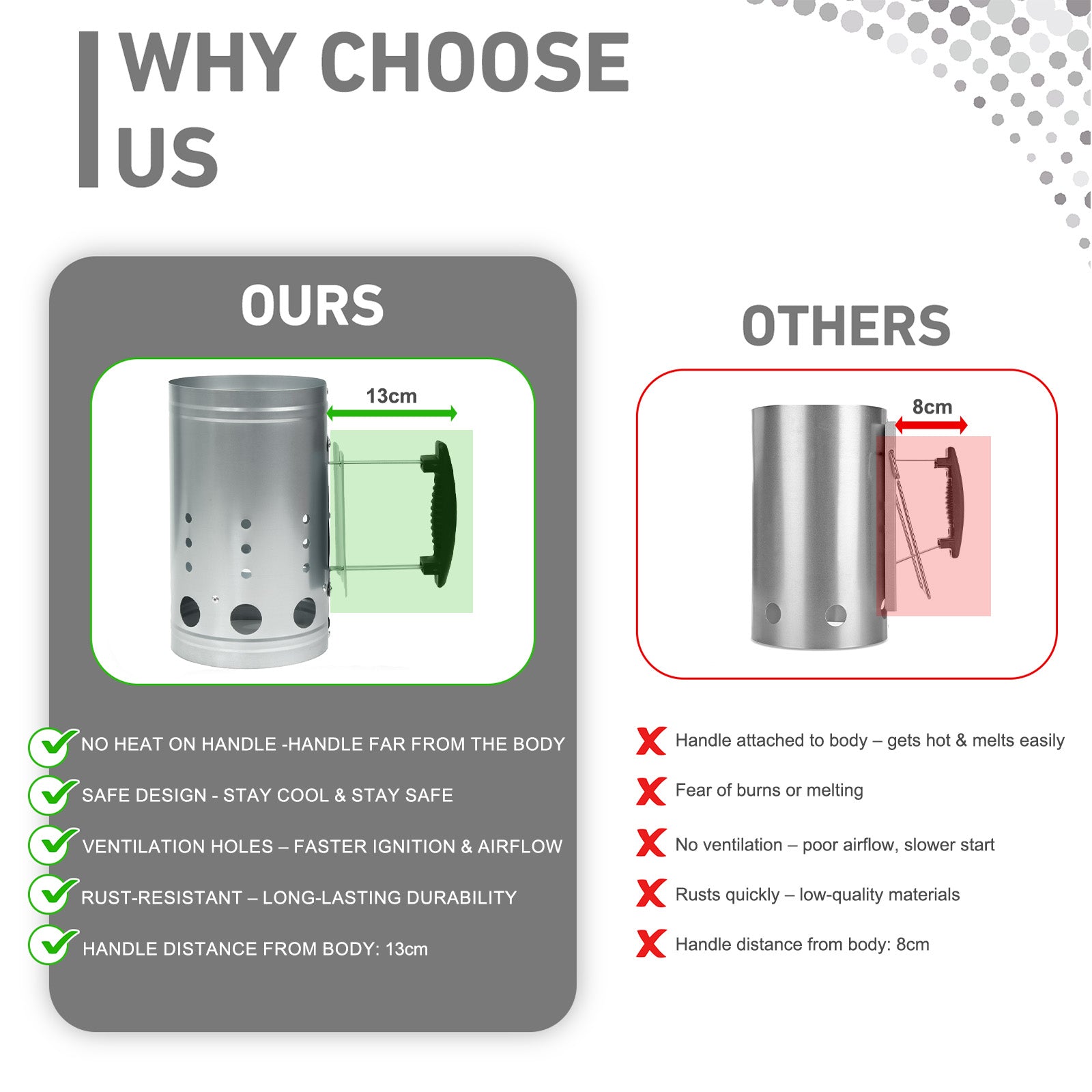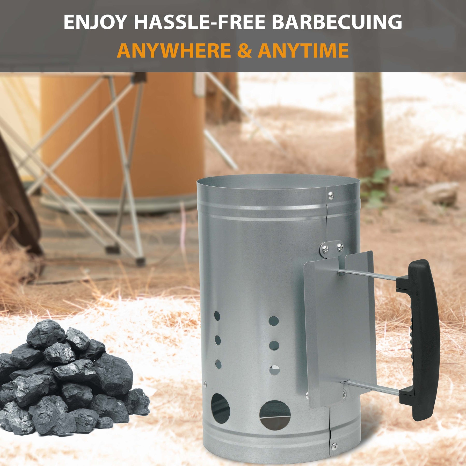 Take the hassle out of lighting your barbecue with this Charcoal Chimney Starter Kit – the fastest, cleanest, and most efficient way to get your grill going. Made from heavy-duty galvanized steel, this tool is built to last season after season, giving you reliable performance whenever you fire up the barbecue or a fire pit.