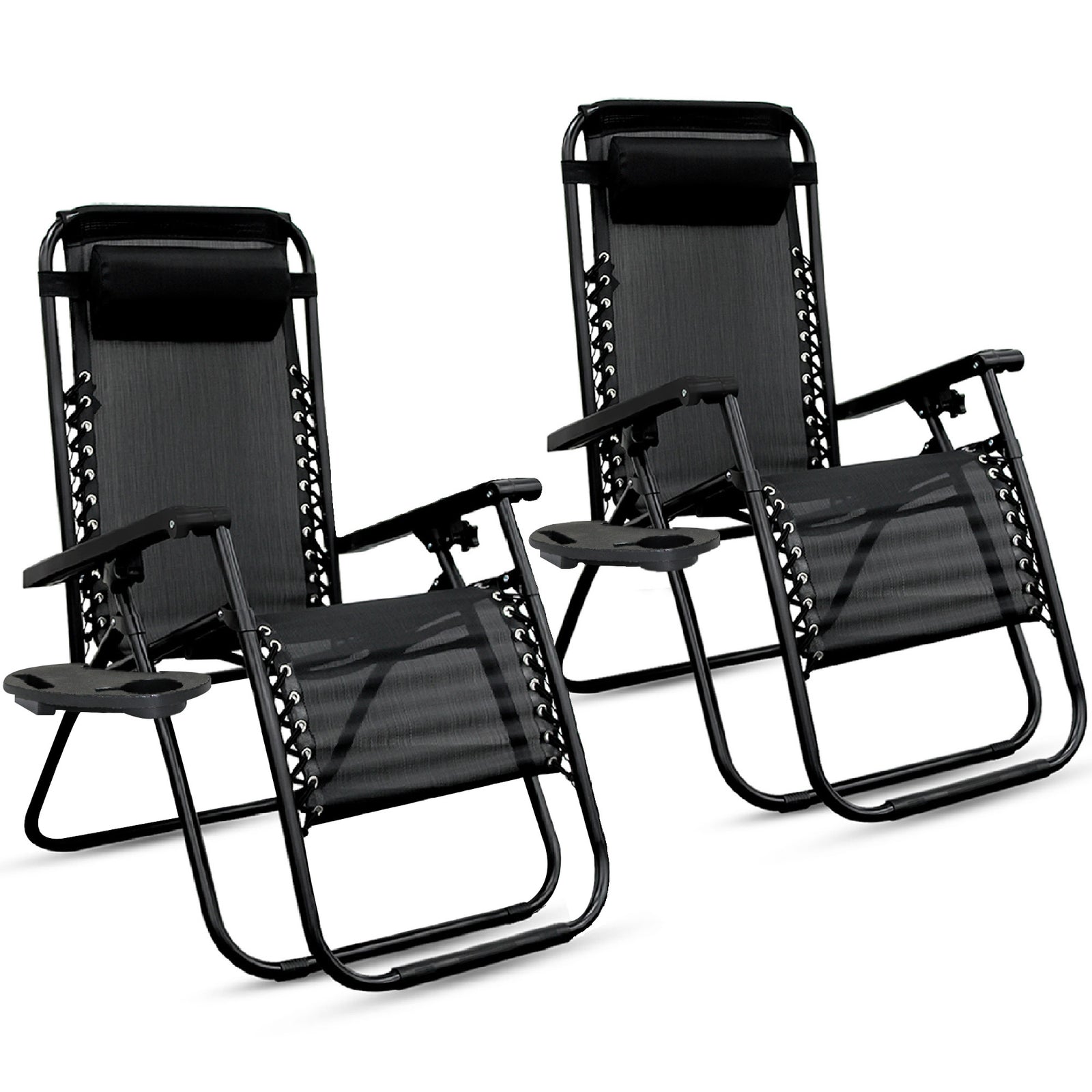 Set of 2 Zero Gravity Chair Sun lounger with Cup Holder