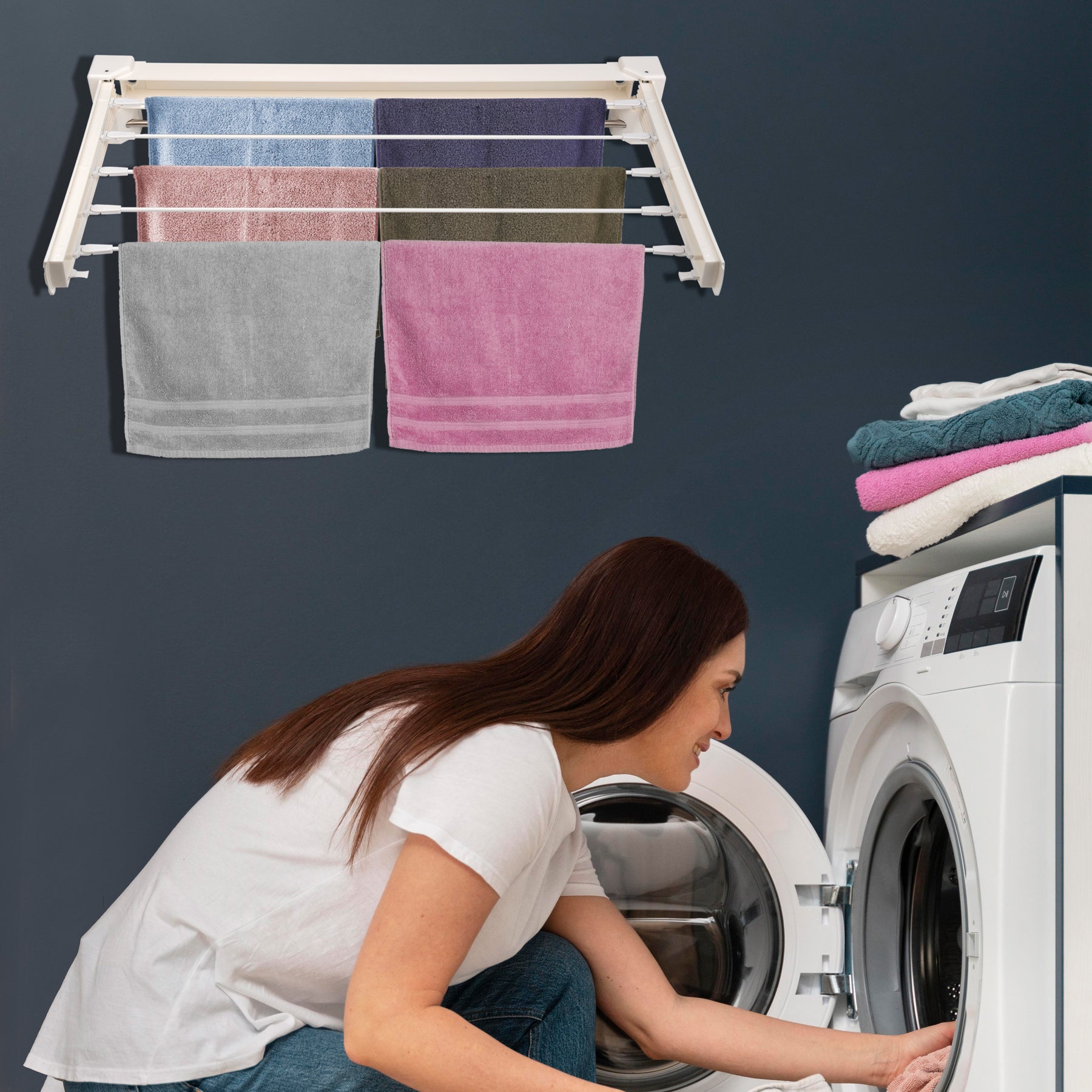 Maximize your space with a convenient wall-mounted clothesline, perfect for caravans, or small apartments. If you need to dry clothes but have limited space, this retractable washing line is the ideal solution. Easily mount it indoors or outdoors with just a drill and a screwdriver—screws and wall plugs are included. Simply measure, mark, and drill for a hassle-free installation. The drilling template will be provided with this rack you can use that template during instalation.