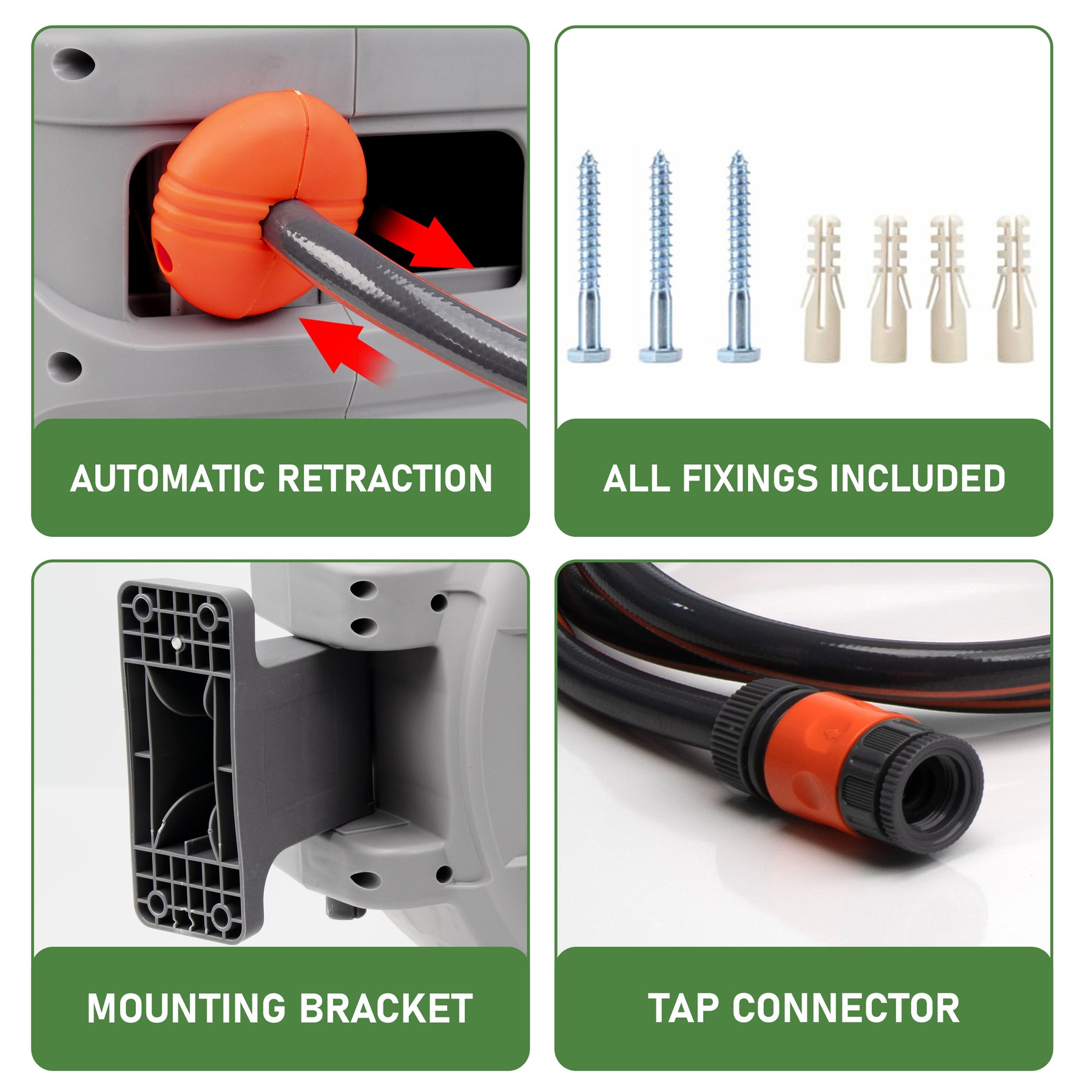 Transform your gardening experience with the Crystals 25/30 Meters Compact Garden Hose Reel. This innovative garden tool is designed to make maintaining your garden effortless and convenient. Its compact design and wall-mountable feature allow for easy storage and space-saving, making it perfect for small to medium-sized gardens.