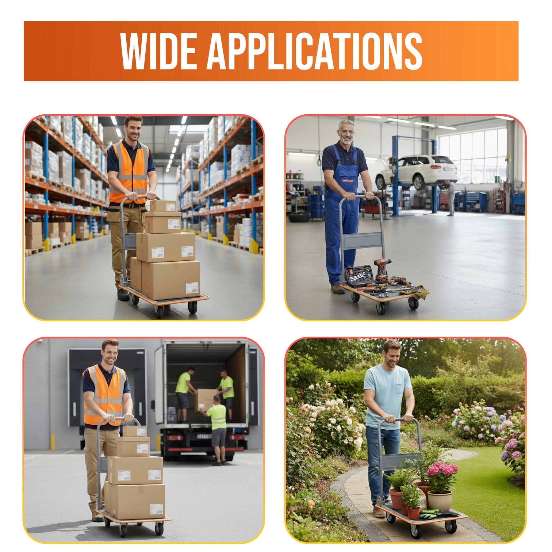 This heavy-duty utility trolley is perfect for moving and transporting goods in warehouses, workshops, factories, or even at home. Built for strength and durability, it can handle heavy loads with ease, making it ideal for industrial, commercial, or personal use. The trolley features a sturdy base, smooth-rolling wheels, and a reliable frame to ensure stability while transporting boxes, equipment, or other heavy items.