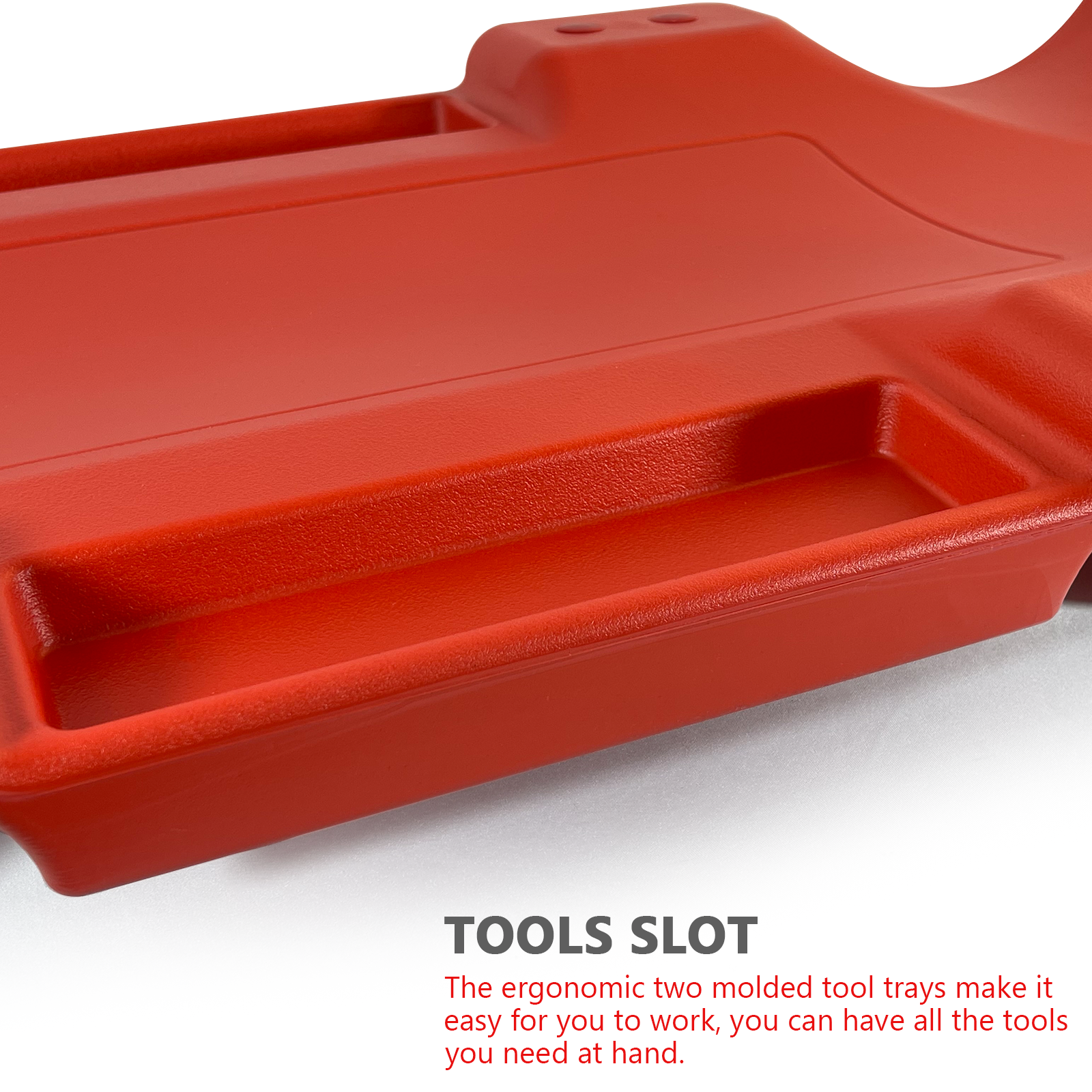 Molded from composite material and 6 rotating wheels for easy maneuverability whilst working. The head of the creeper also has a padded headrest for extra comfort. In addition, the creeper features a carry handle as well as two extremely handy tool storage trays. The undercar creeper measures 40 inches. The creeper can be hung up when not in use or left to be freestanding. All fixings are included.