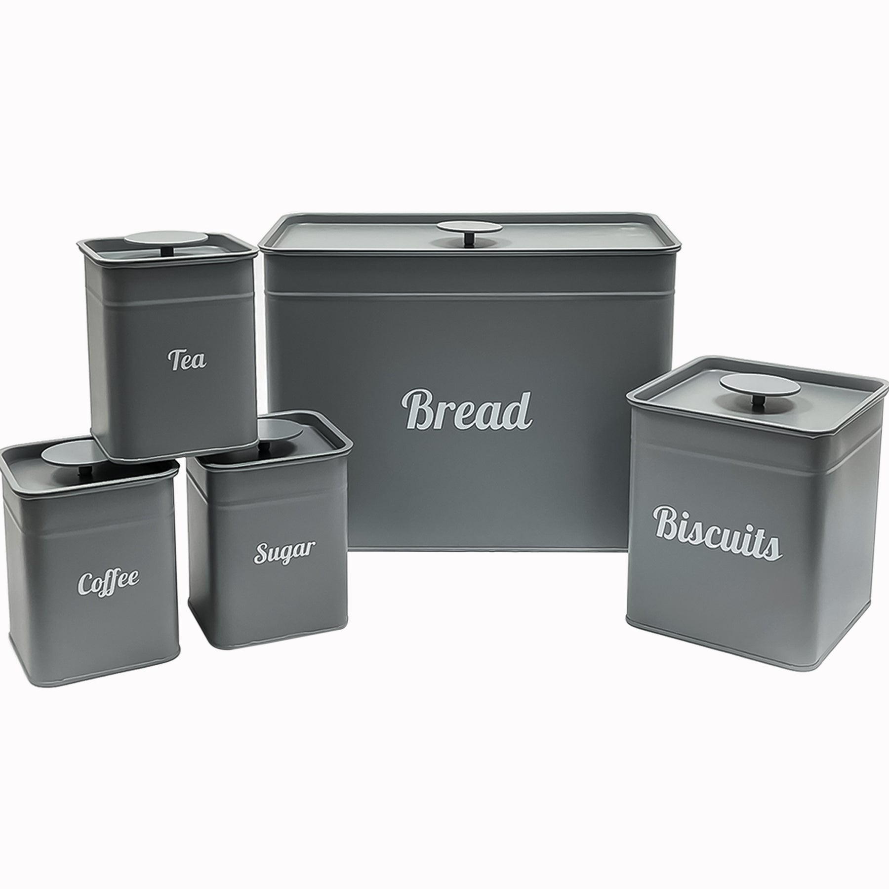 5 Piece Kitchen Storage Tins Canister - Bread Bin