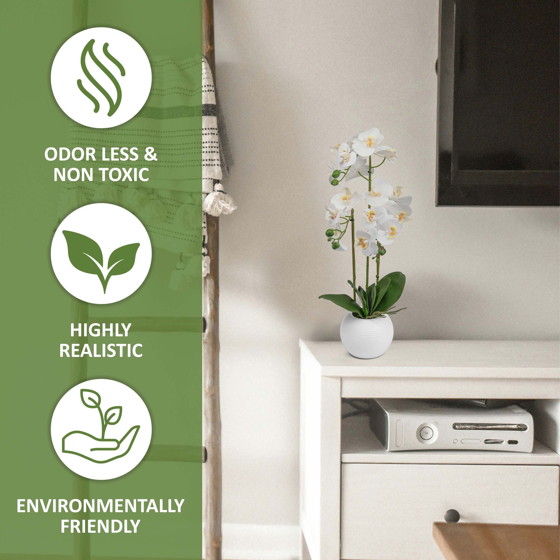 Add a touch of natural elegance to your space with this beautifully crafted artificial Phalaenopsis orchid. Featuring lifelike blooms and realistic foliage, this faux flower arrangement offers the beauty of real orchids without the maintenance.