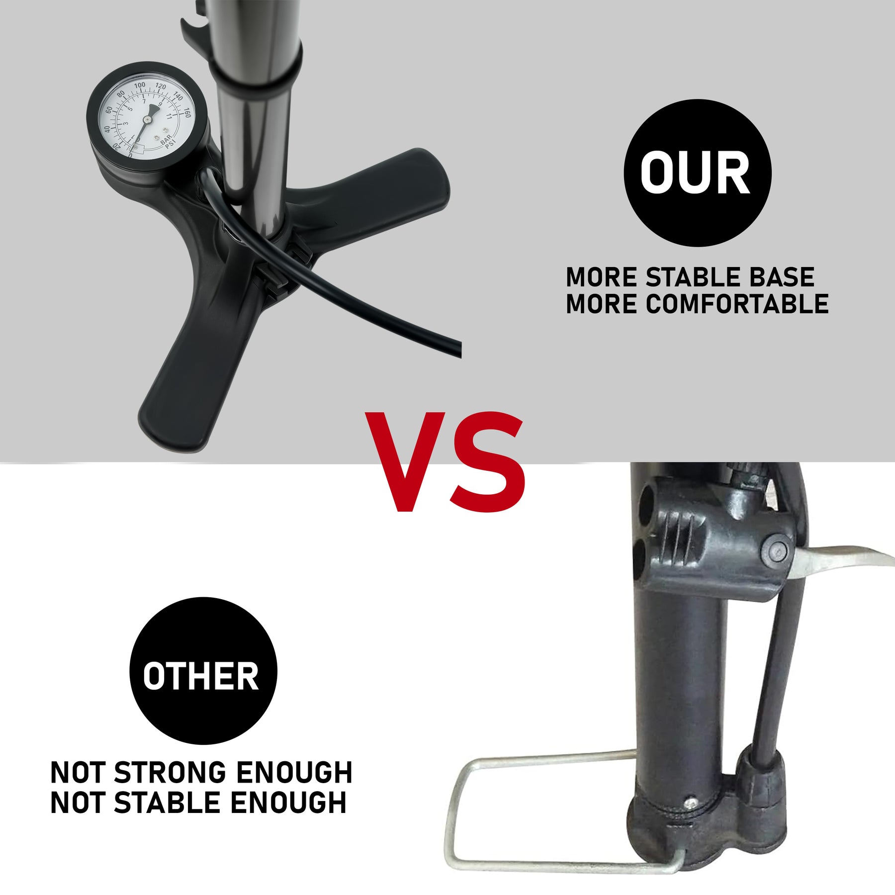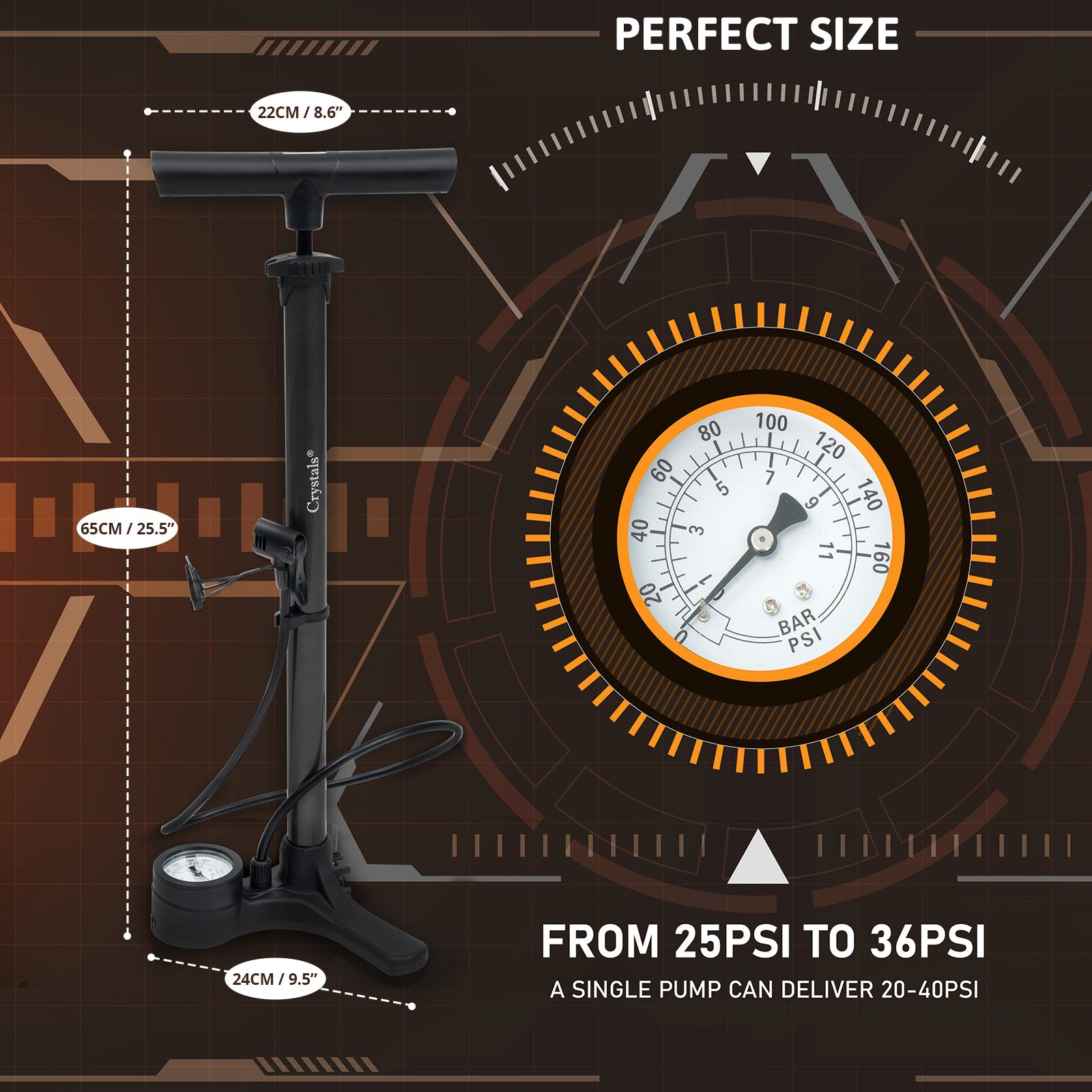 The Cycling Mountain Bike Foot Floor Pump is a powerful and versatile tool designed for cyclists who demand efficiency and reliability. It provides high-pressure inflation up to 160 PSI, making it ideal for both mountain and road bikes. The precise pressure gauge ensures accurate inflation, preventing over or under-inflation.Its dual-valve head is compatible with both Presta and Schrader valves, ensuring versatility across different bike types. The compact and lightweight design makes it easy to carry and store, perfect for home use or on-the-go cyclists.