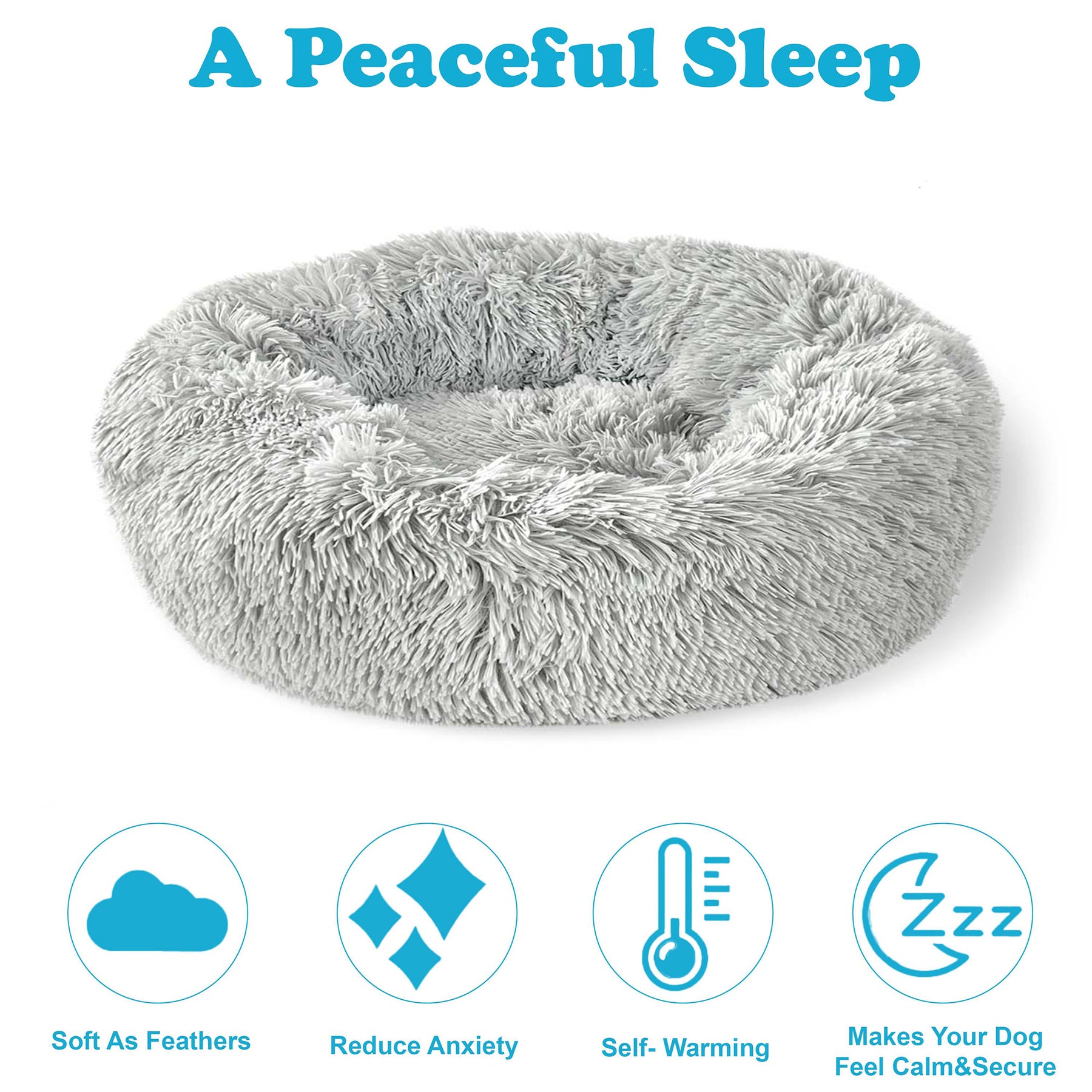 This comfortable pet bed is made of soft plush which can keep your pet self-warming and comfortable in cold weather. With its unique donut shape and plush materials, this bed offers a warm and inviting space for your furry friend to relax and unwind. The Soft Bed for Pets with a Donut Design offers a combination of comfort, support, and style for your furry companion.