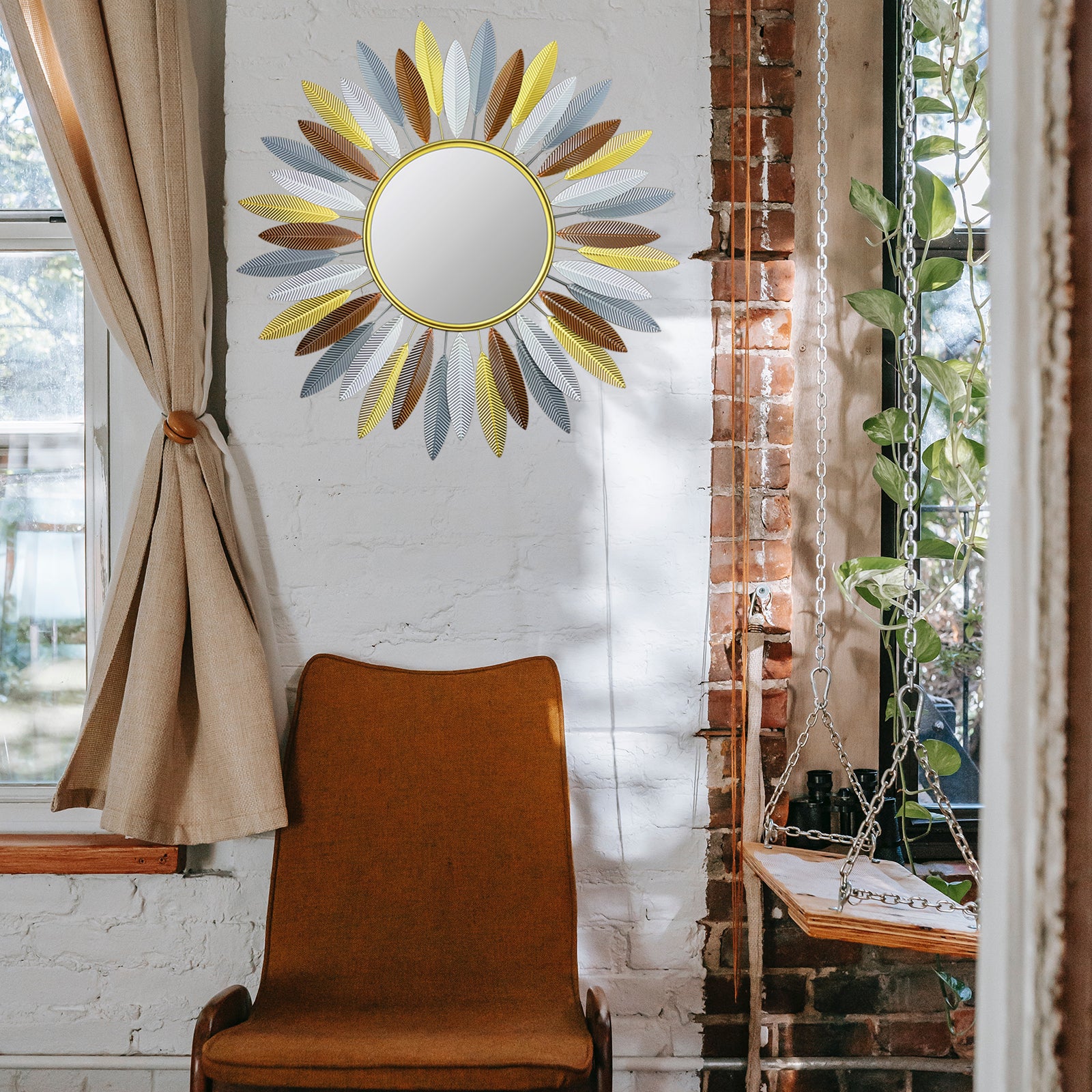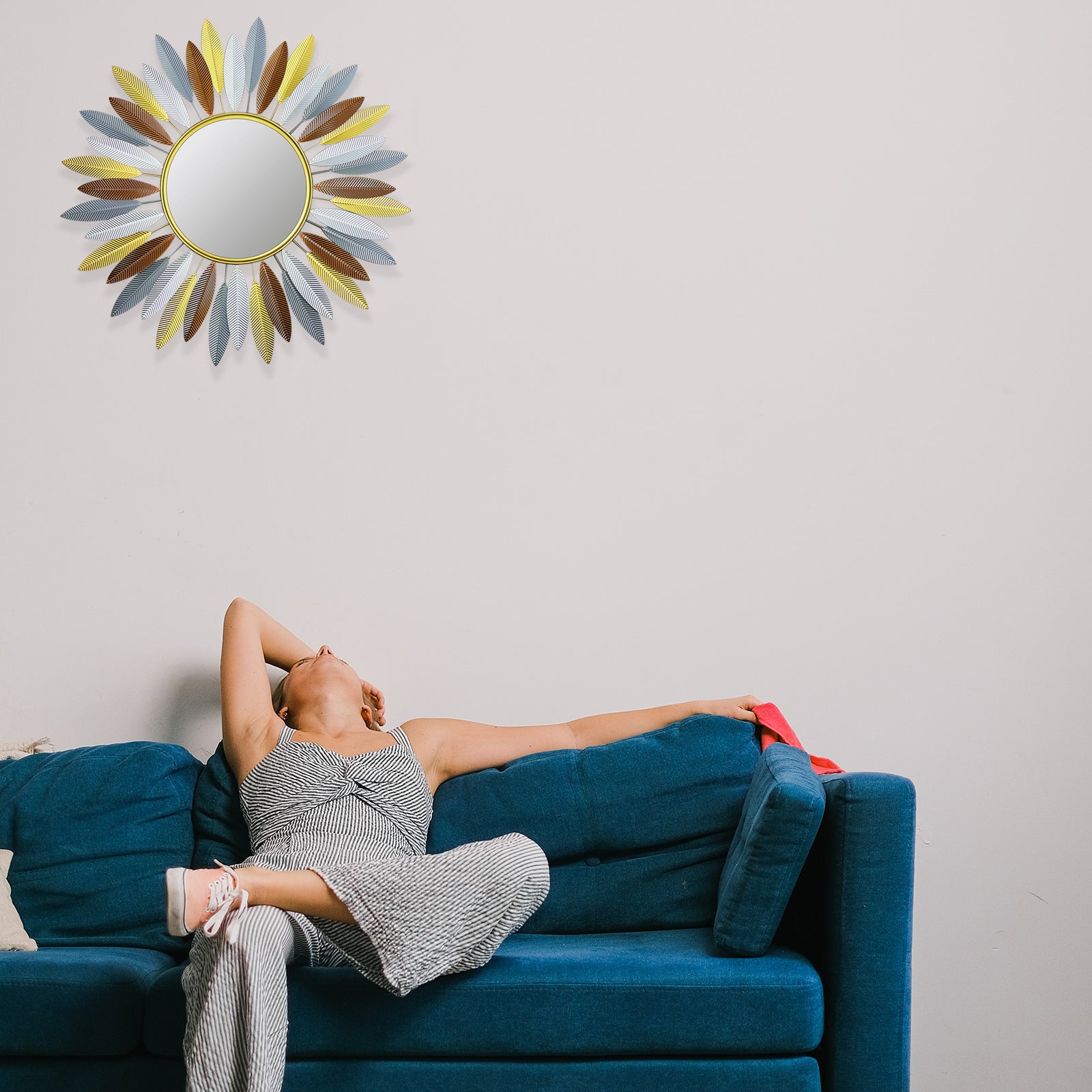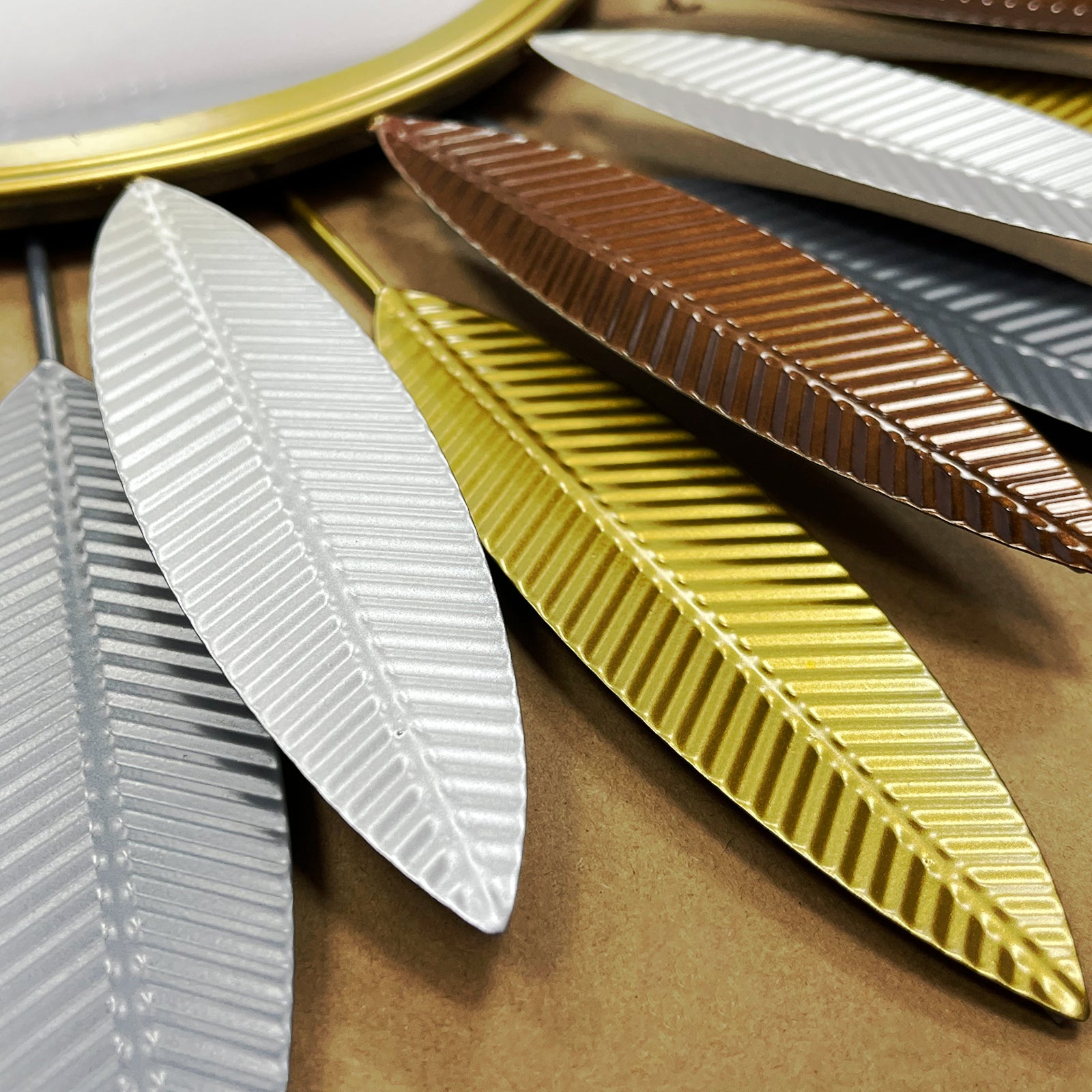 This Golden Leaf Wall Mirror is a stunning and unique piece of décor that will add a touch of sophistication to any room. The mirror is made of high-quality metal in a leaf shape, and it is finished with a solid reinforcing back for added stability. It is perfect for the bathroom, bedroom, hallway, living room, or kitchen, and it would look amazing in vintage, modern, or industrial style interior décor theme homes.