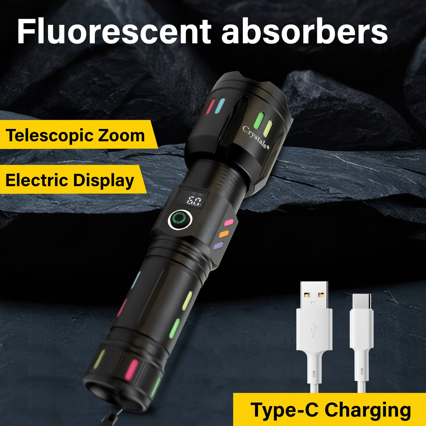 The torch is widely used for outdoor activities, camping, maintenance, hiking, running, walking the dog, ower outage emergencies and more. It is also the ideal gift for family and friends! Powerful flashlight produce a high-brightness uniform beam for a wider lighting range and long-distance illumination. It has a adjustable focus feature. Easily light up an entire room or road to fully meet your daily needs. Digital display from where you can get the charging percentage.