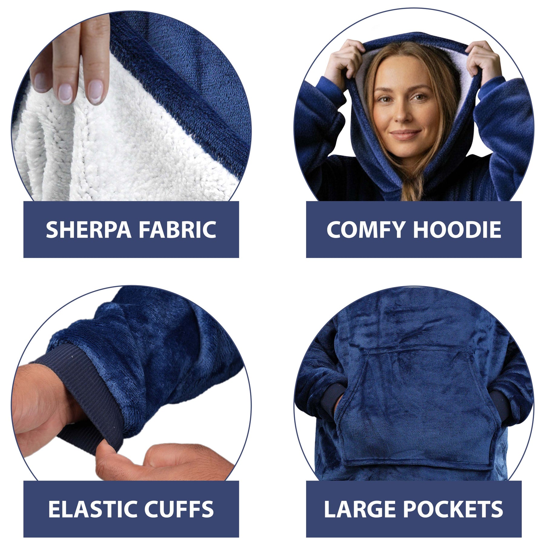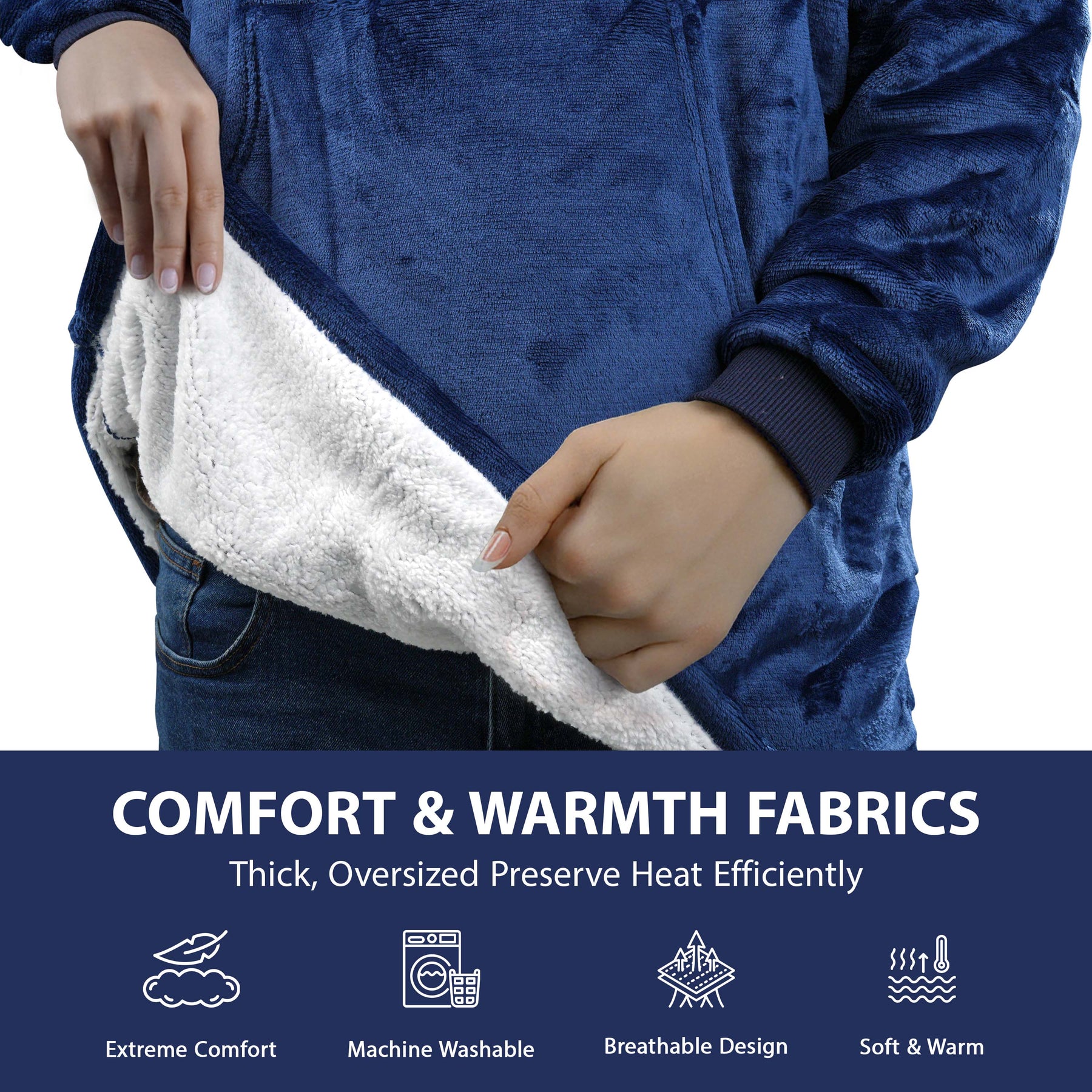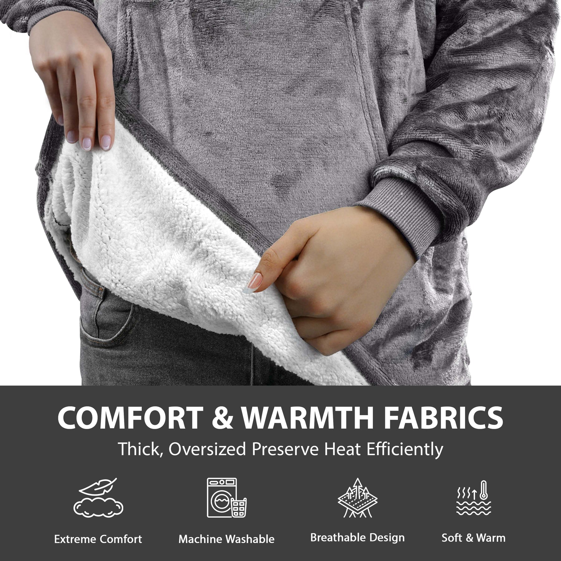 This hoodie with long sleeves covers you completely well and allows you to move and use your hands freely. It keeps you warm and cozy while lounging at home, morning coffee outside, or at a sporting event, you can wear it for any camping or outdoor activities without having to take it off. Super soft Sherpa blanket sweatshirt with a huge pocket, which is able to store phones, snacks, remote controllers, and so on.