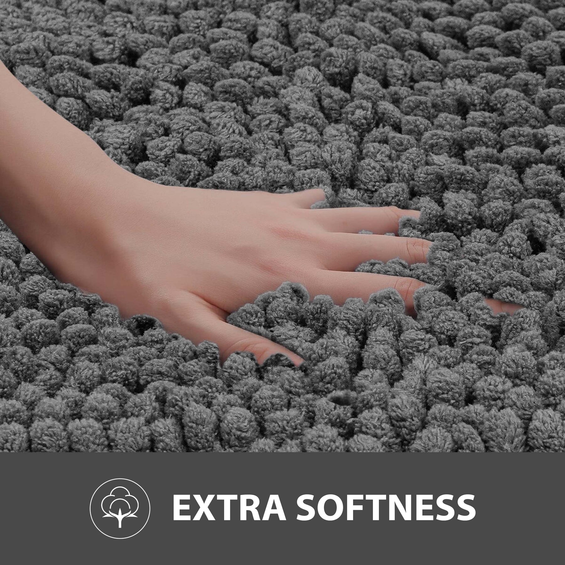 Our Bath & Toilet mat is a soft and comfortable mat designed for use in bathrooms. It is made from chenille yarn, known for its plush and fuzzy texture. This yarn is created by twisting short lengths of yarn between two core strands, giving it a velvety appearance and a gentle feel. These bath mats are available in three versatile colors: grey, charcoal, and white, allowing you to choose one that suits your bathroom décor. They are also easy to maintain, as they are machine washable, ensuring convenience and long-lasting use.