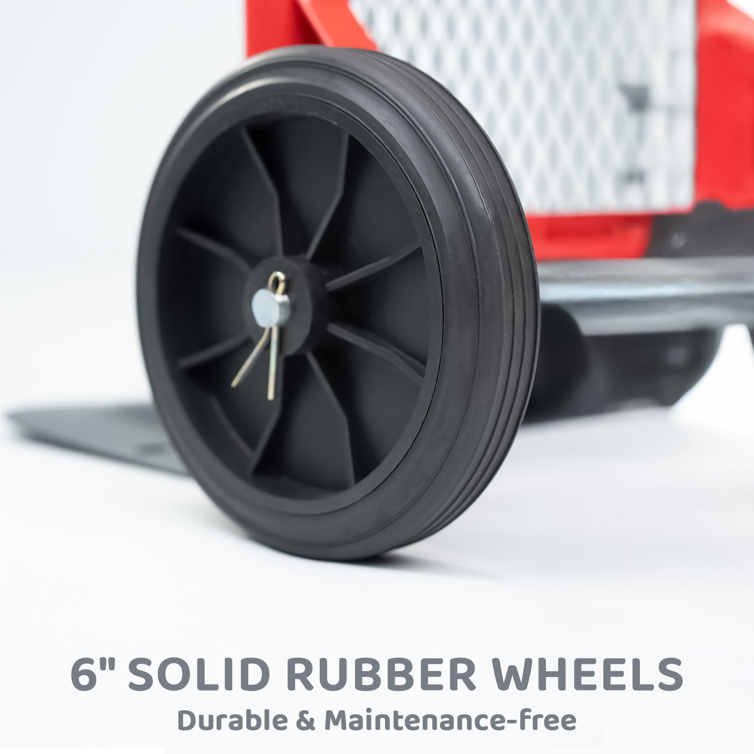 The strong and heavy duty Brave Tools sack truck is made from steel, decorated in red and black. It is the perfect tool to move heavy and large objects safely and with ease. The trolley is easy to manuevre, fold and use. It features an ergonomic handle for comfort as well as an elasticated bag holder. A maximum load capacity of 60kg and 3 different handle heights to make the trolley perfect for your needs. The truck can be altered to be used as a flat bed or as upright in a matter of seconds! 2 inch swivel castors and heavy duty 6 inch solid wheels make the trolley easy to move around.