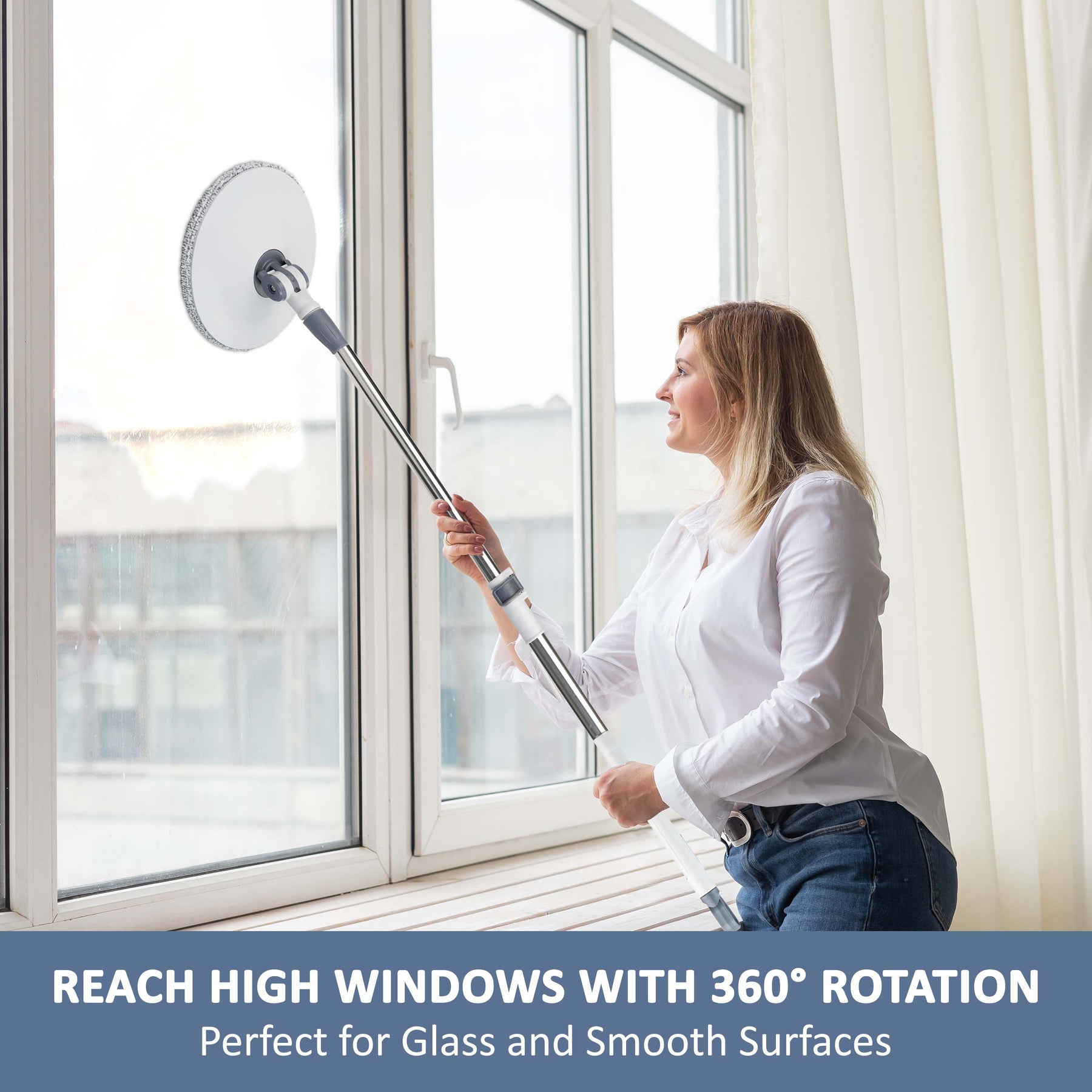 The mop head rotates 360°, allowing you to easily clean hard-to-reach areas under furniture and in corners. The mop head is ensuring that you always have a dry mop.Includes two machine-washable microfiber pads that are reusable and durable; suitable for those seeking mop bucket with wringer that support sustainable cleaning.The mop and bucket kit has a unique system that separates dirty from clean water. The bucket has a separate compartment for dirty water, which prevents the dirty water from contaminating the clean water.