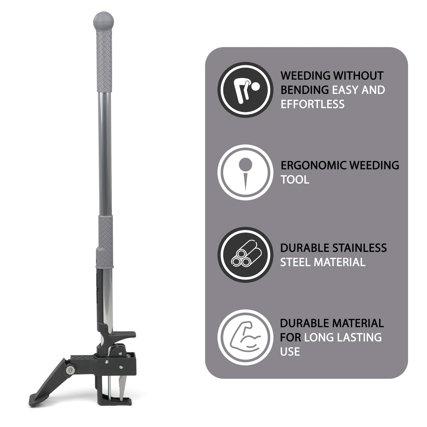 • EASY TO USE: No installation needed. Please keep stand-up, simply push the tines into the roots of the weeds /flower/grass, let the tine grasps grass roots, tilt to one side and pull out the weed and release the grass.