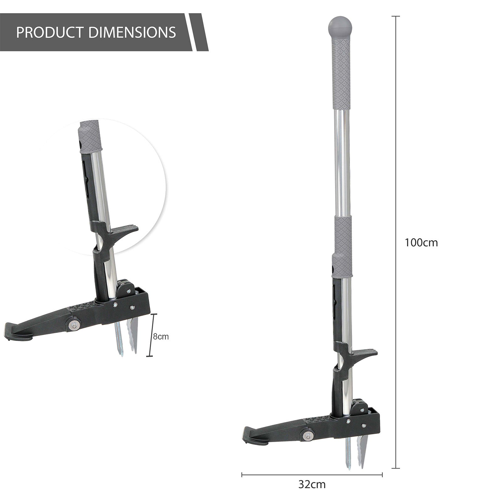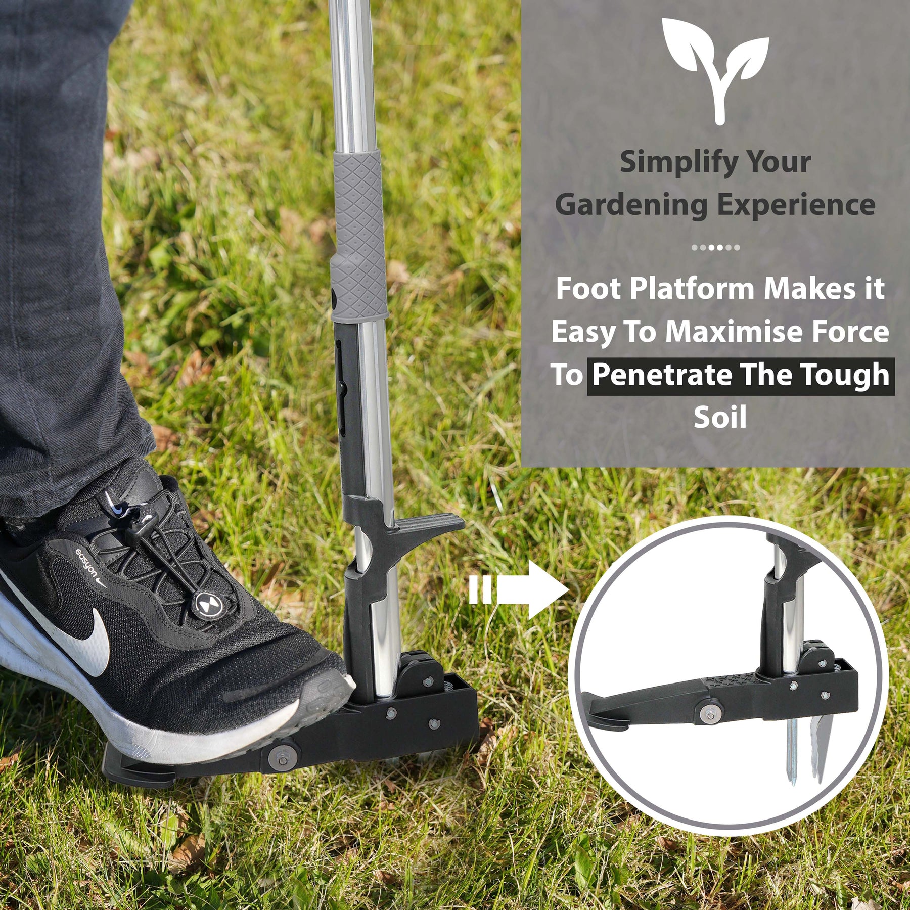 • LABOR SAVING: 4 Steel claws long enough to efficiently remove grass roots. The folding foot plate adjustable is also suitable for the slope. Step on the pedal, push down the handle into the ground directly and effectively.