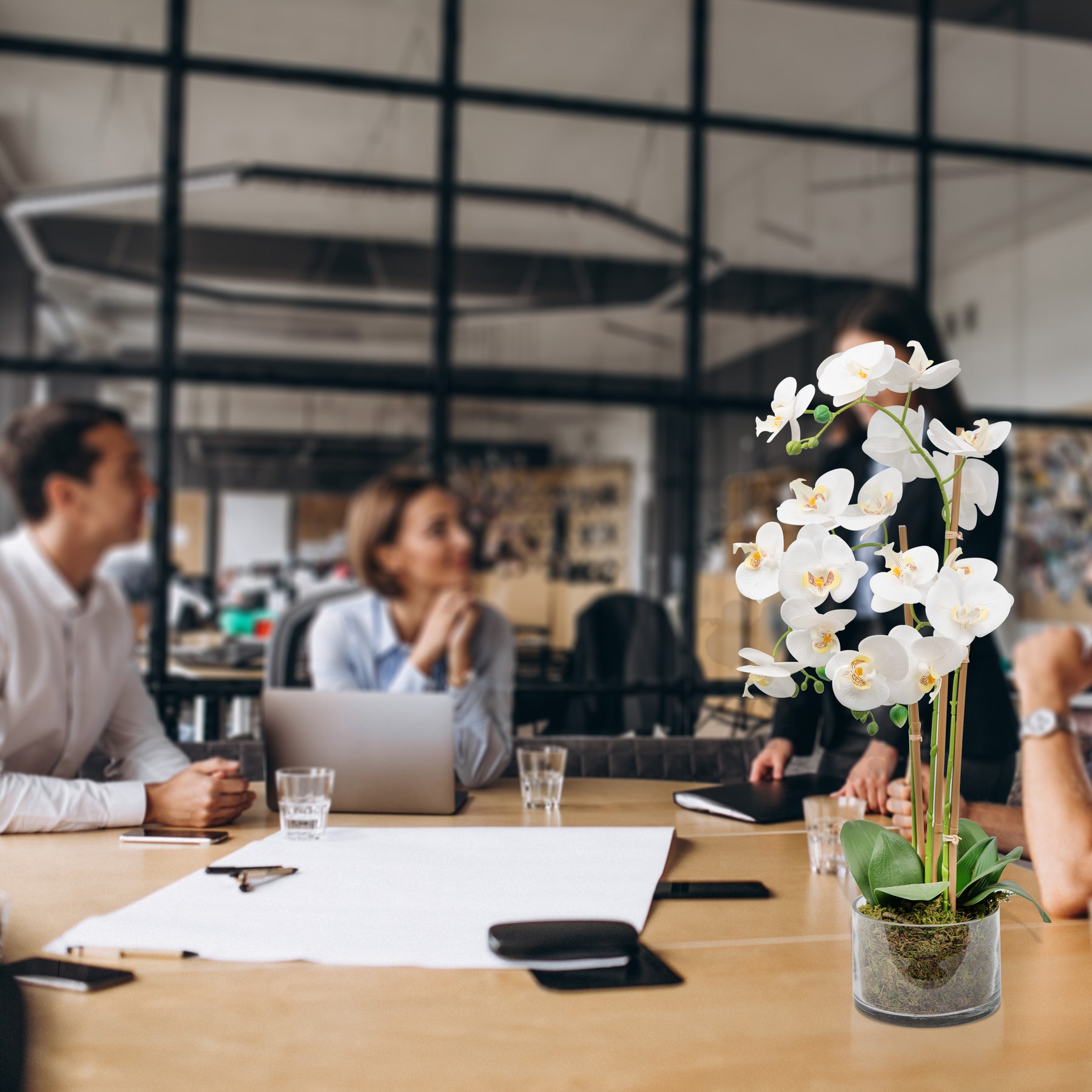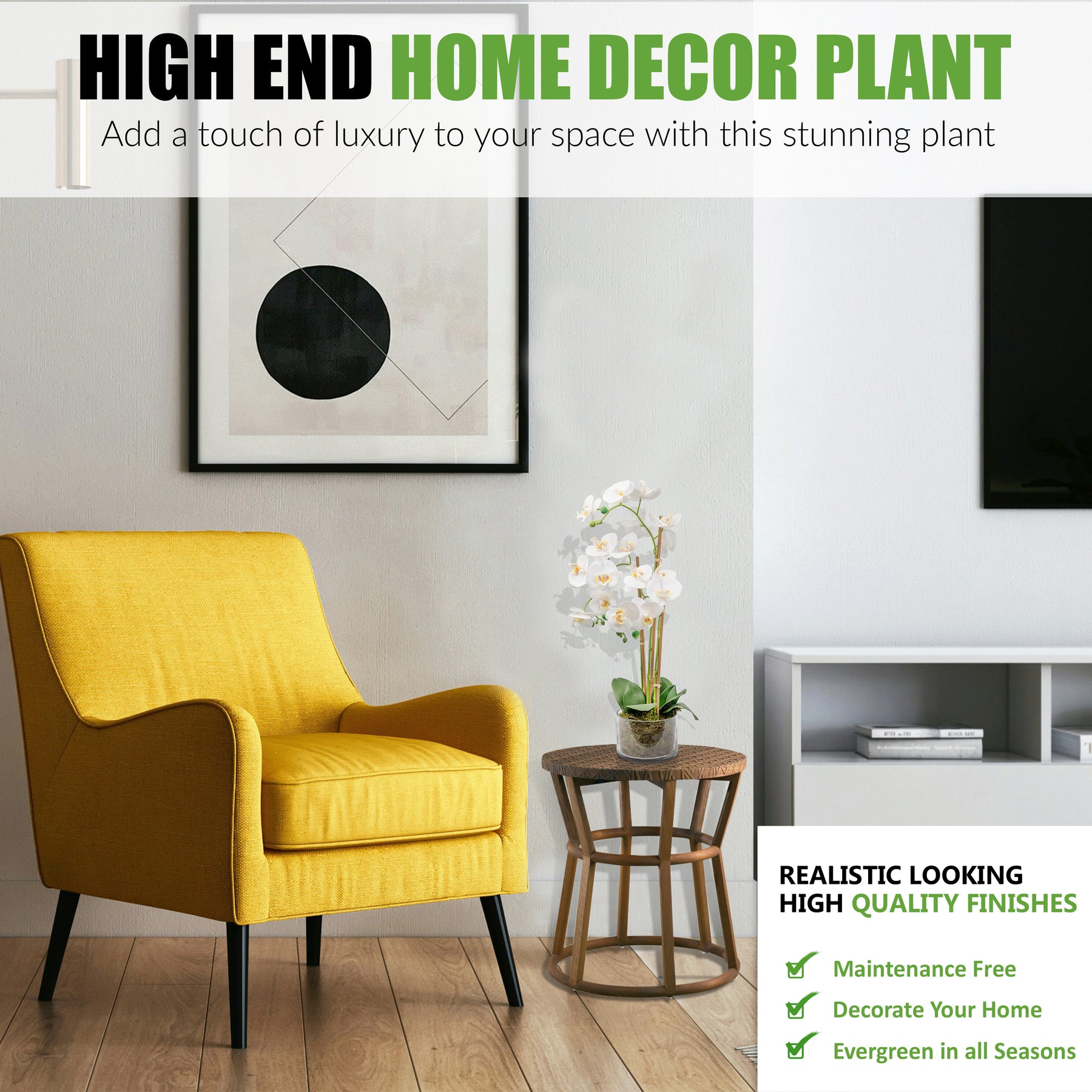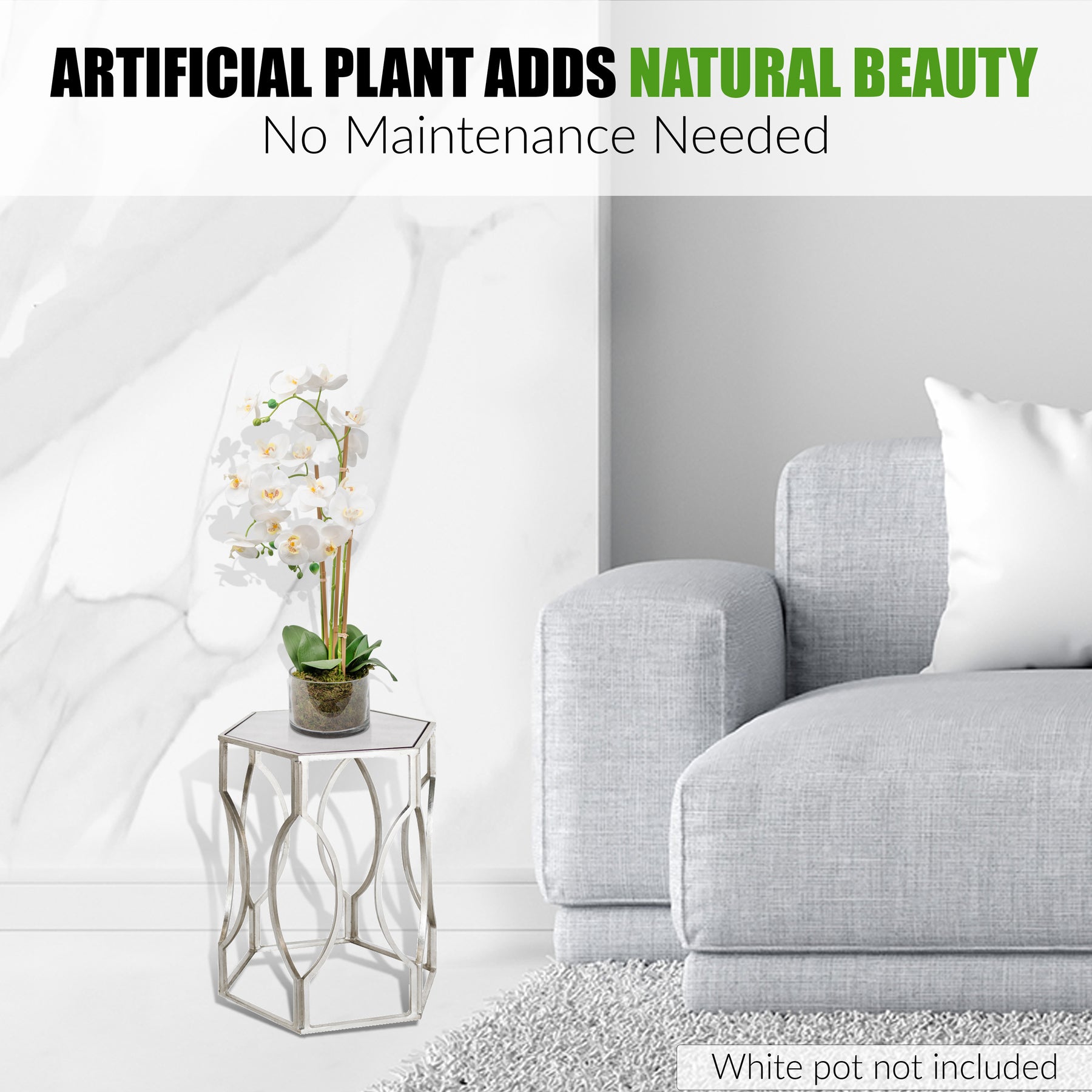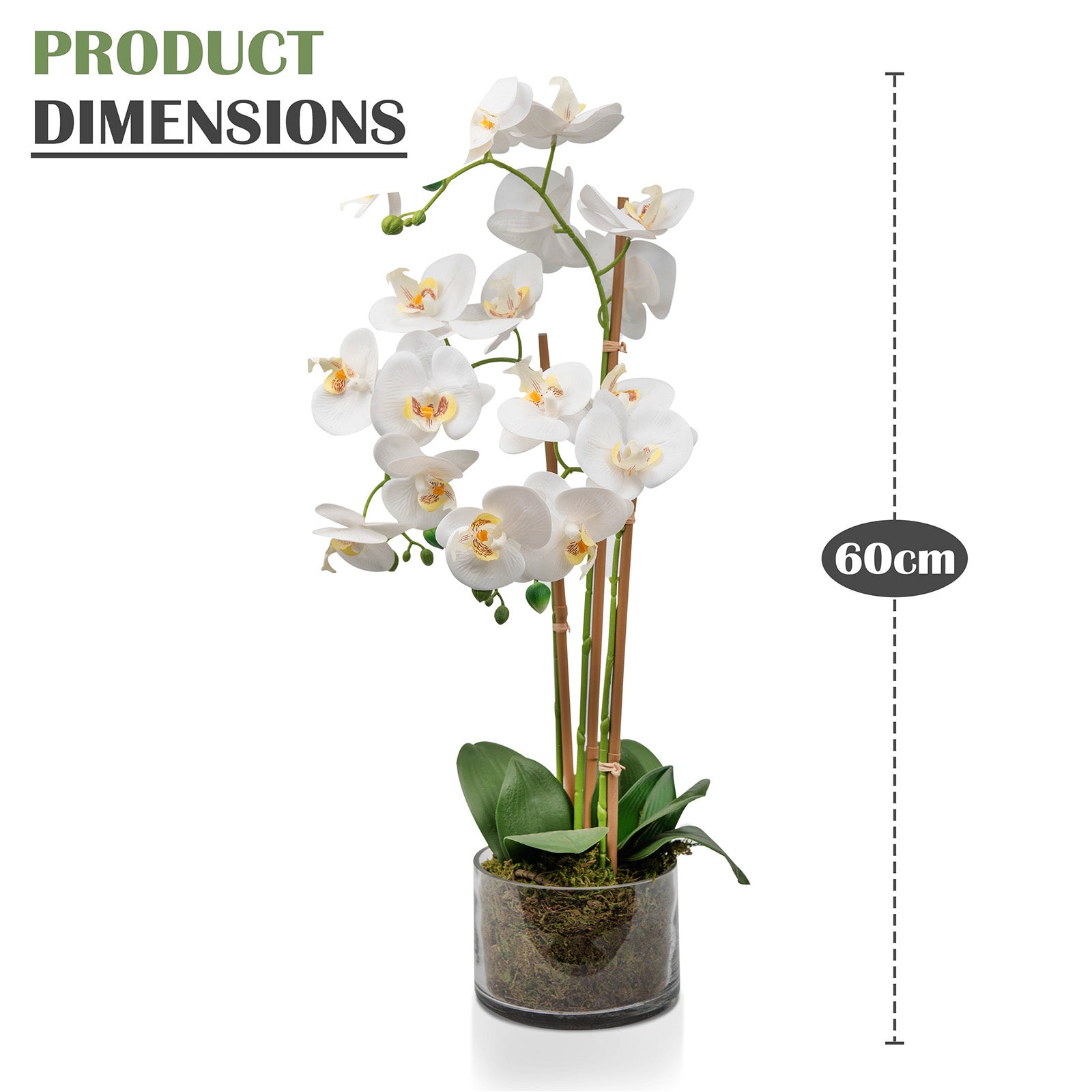 Add a touch of natural elegance to your space with this beautifully crafted artificial Phalaenopsis orchid. Featuring lifelike blooms and realistic foliage, this faux flower arrangement offers the beauty of real orchids without the maintenance.