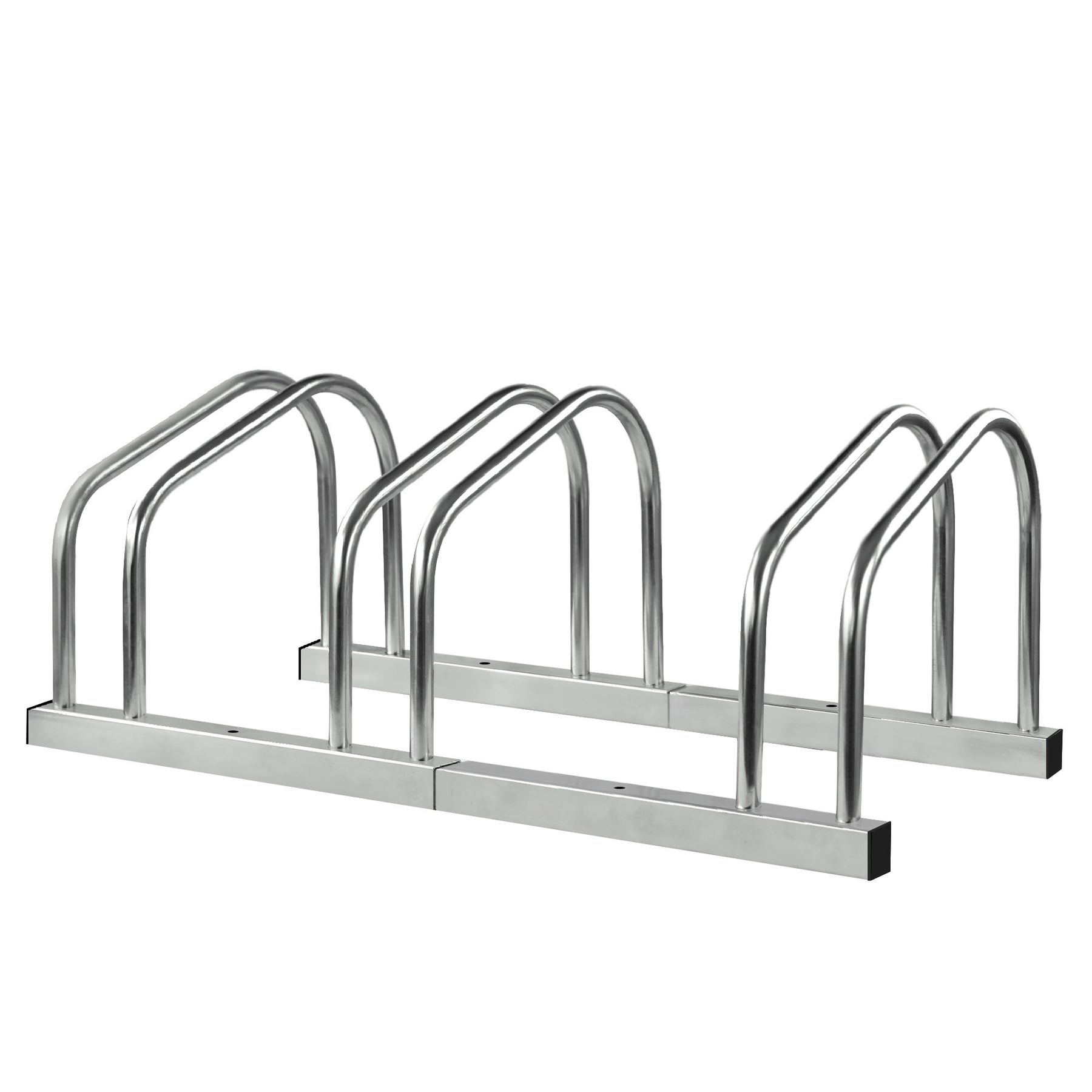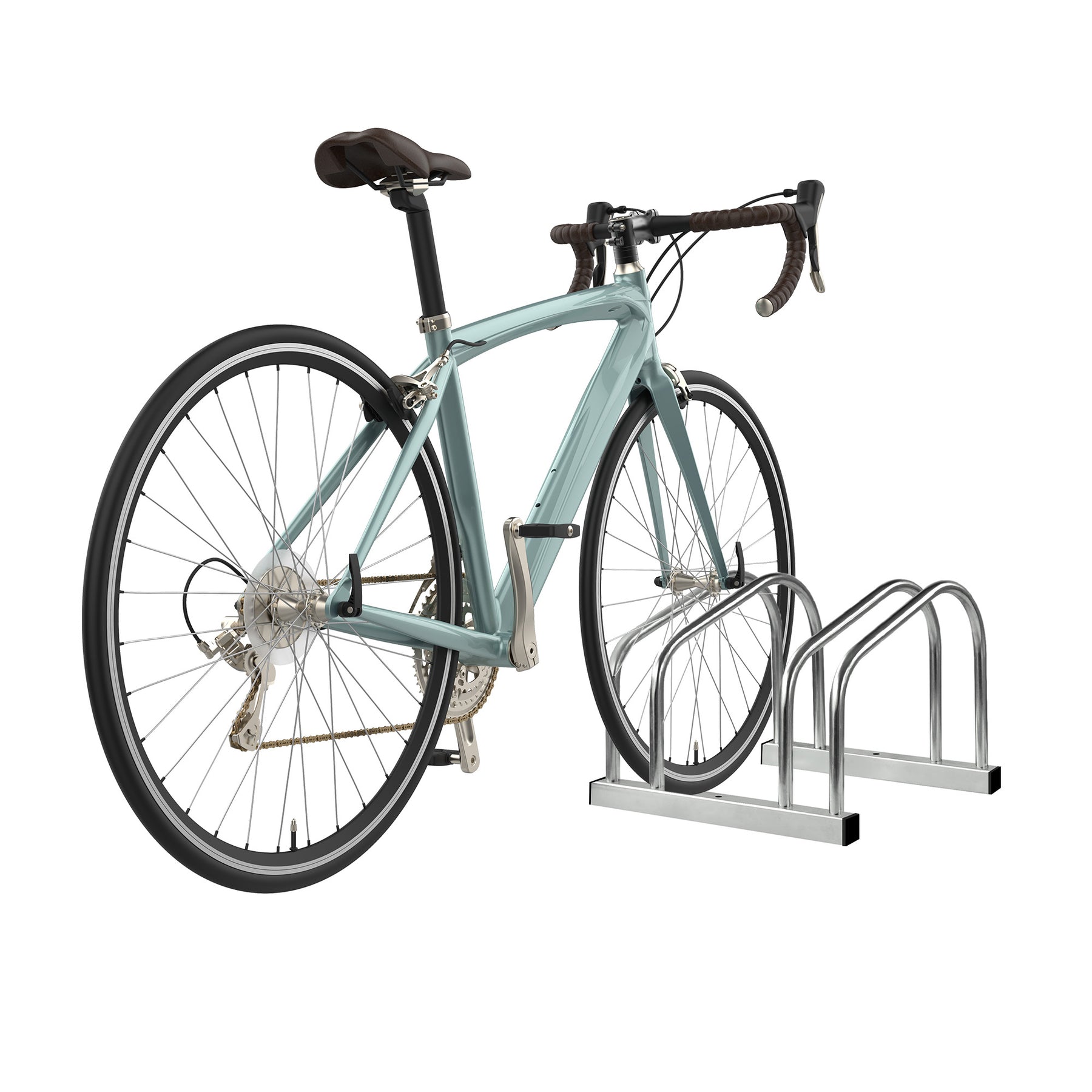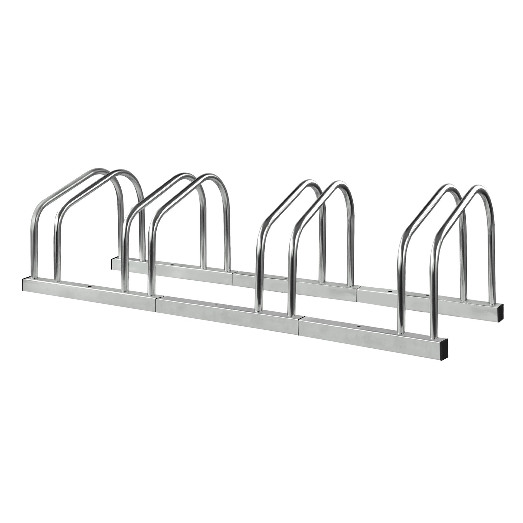 Heavy duty durable galvanized steel pipe constructed bicycle parking rack floor stand storage rack stands are ideal for storing bikes securely in sheds, garages and garden to protect bikes form scratches or damages, as well as making the parking well-ordered. The bicycle stands are pre-drilled mounting holes on the rack, completing with fixings. It has features with premium galvanized steel pipe surface ensure the stand rack will not get rusty over the time and durable to use for long term use. The bike stand racks are available in four sizes to park 2, 3, 4 or 5 bikes.