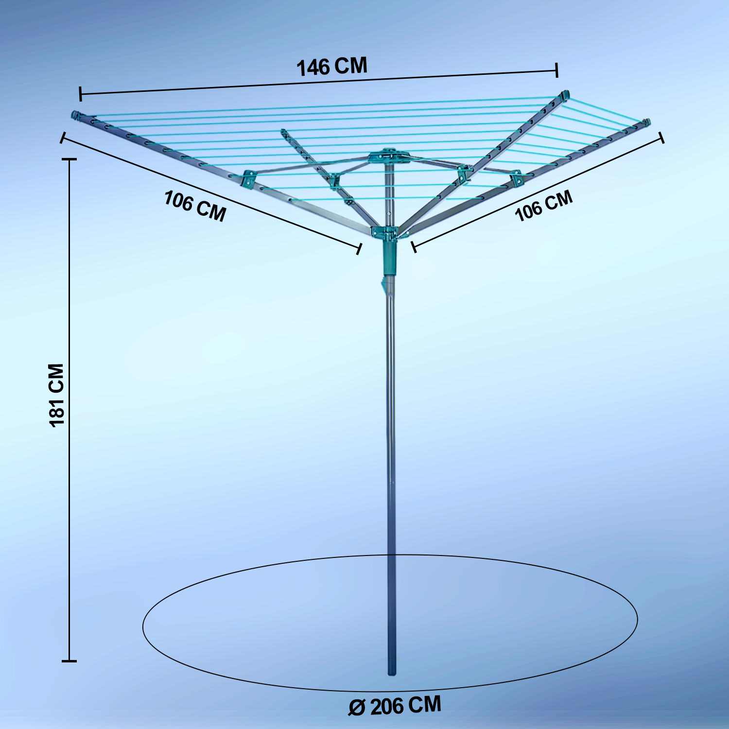 This high-quality washing line is perfect for medium to large drying. The umbrella-style design comes complete with four airing arms for up to 50M of drying space. The steel construction of the 50M rotary airers provides a long-lasting drying space for your loads of washing. All airers come in a heavy-duty mail-order box to prevent damage whilst in transit. PVC-coated mould-proof washing line ensures that they last for years and not just for one season.
