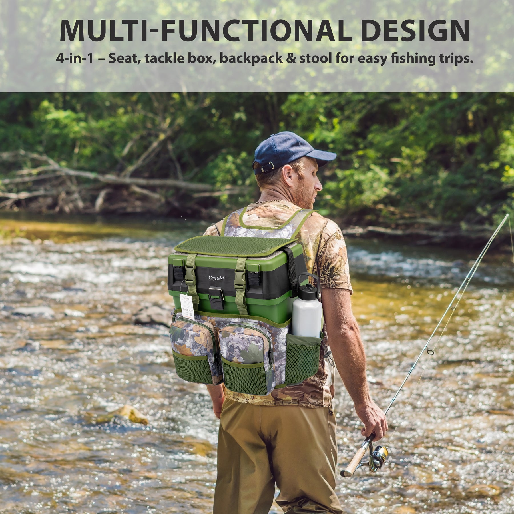 Our fishing tackle bags designed for function and efficiency, guarantees easy access to fishing pliers or other fishing tools without fumbling through your bag with a fish on the line. Multiple compartments give you ample space to store your gear ORGANIZED COMPARTMENTS: The tackle pack has a main compartment, a removable divider that integrates the upper and lower compartments as a larger one for storage of bigger items or more tackle boxes. The lid can be used as a padded foam seat.