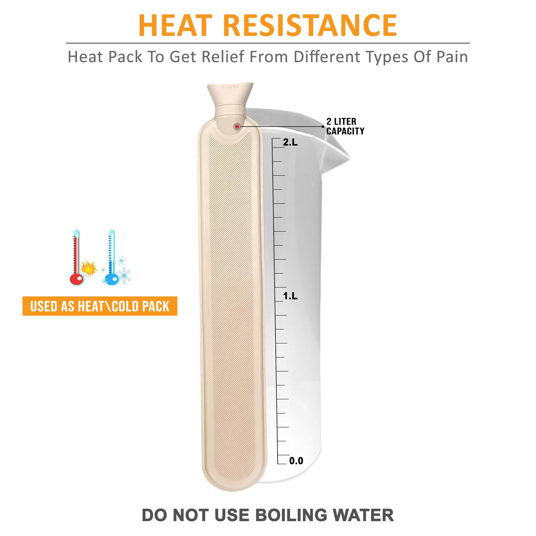 The hot water bottles feature a unique extra-long size which allows them to reach more than one area of the body at once, so you don’t need to be balancing multiple average sized bottles on the painful areas all at once.