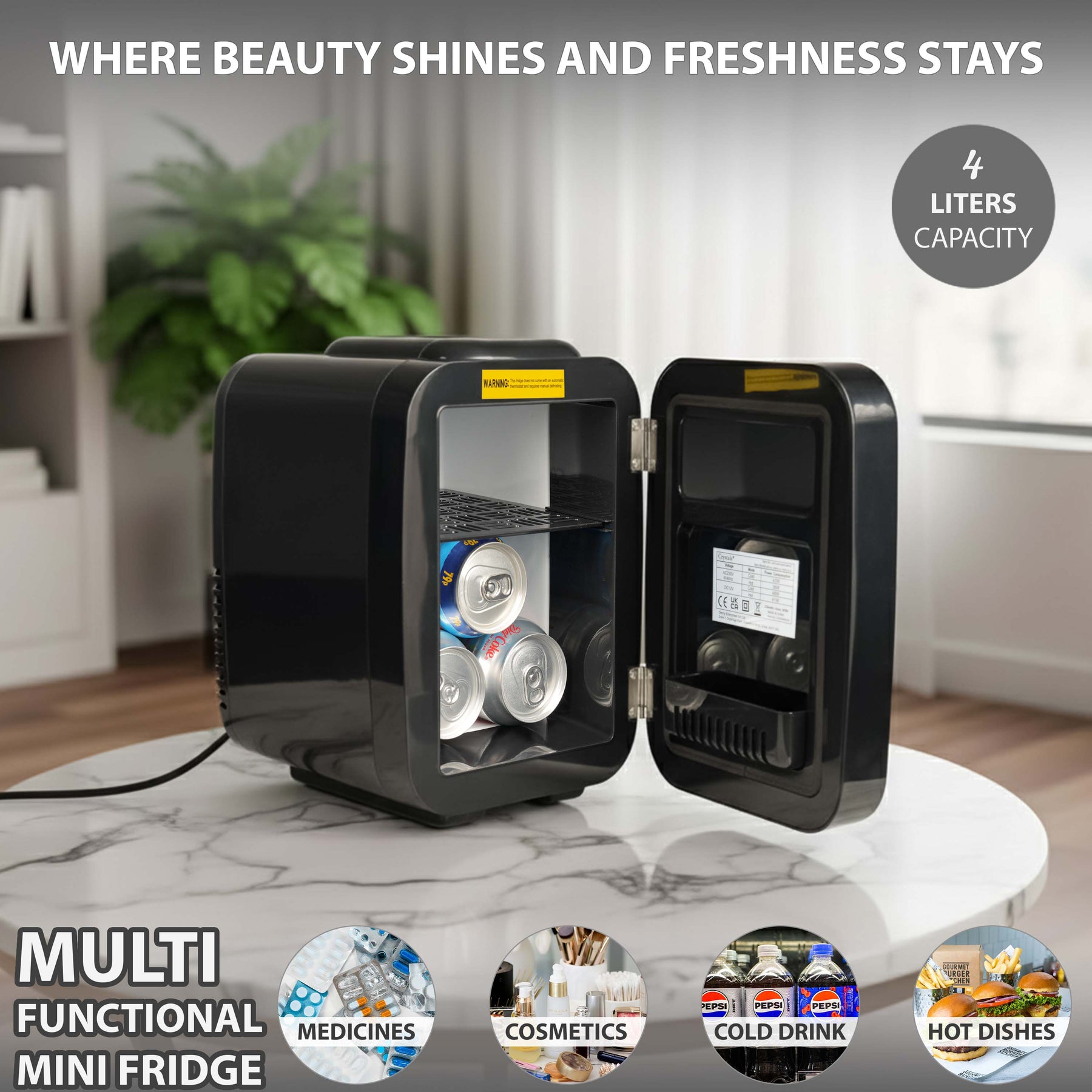 Keep your skincare, cosmetics, and refreshments perfectly stored with this mini cosmetic fridge, designed for ultimate convenience. Ideal for your bedroom, dorm, home office, car, RV, or yacht, this compact fridge connects easily to a 12V car outlet or 220-240V home socket, making it versatile for both travel and home use. It’s the perfect gift for your wife, daughters, or friends!
