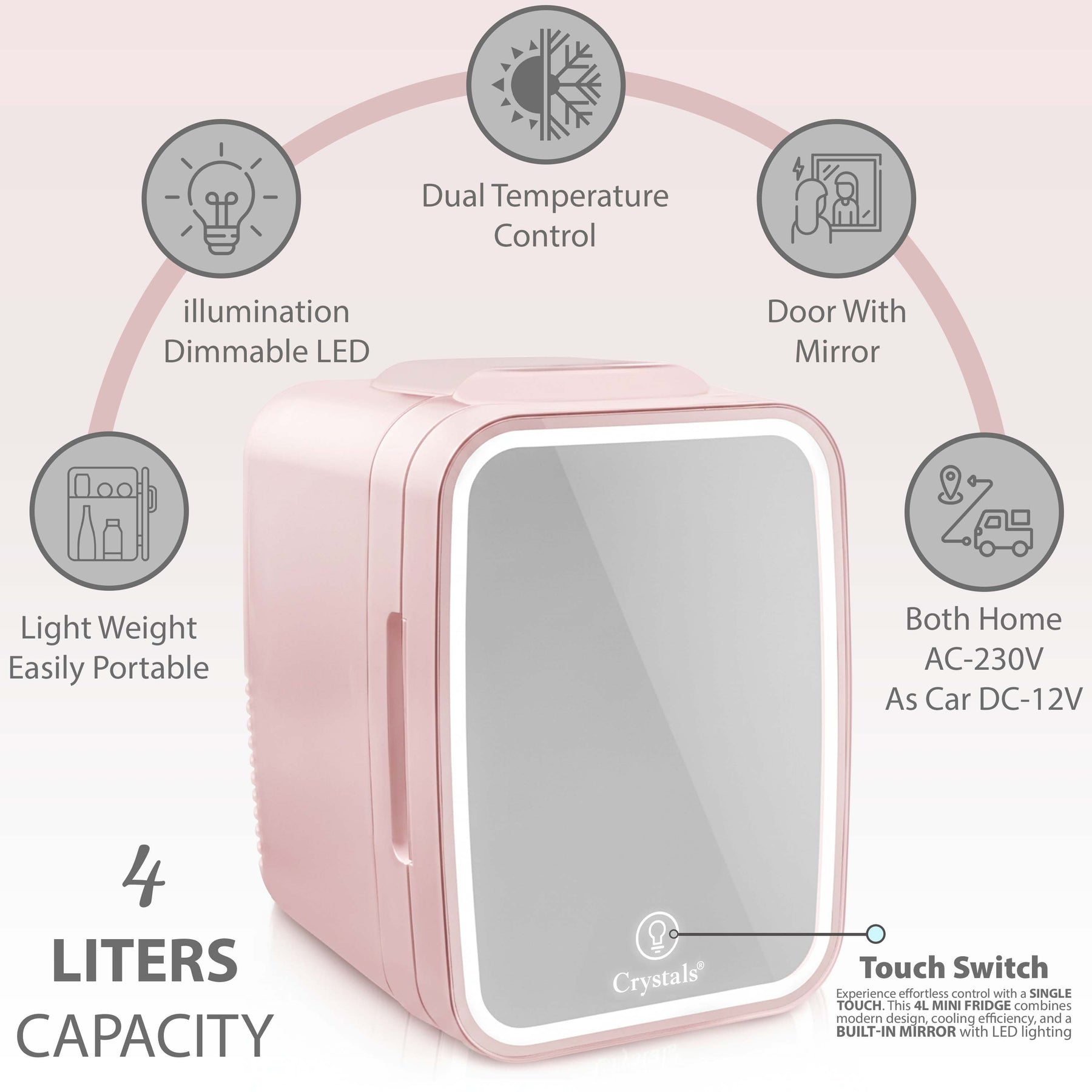 • Multifunctional: Acts as a beauty fridge, night light, and cosmetic mirror.