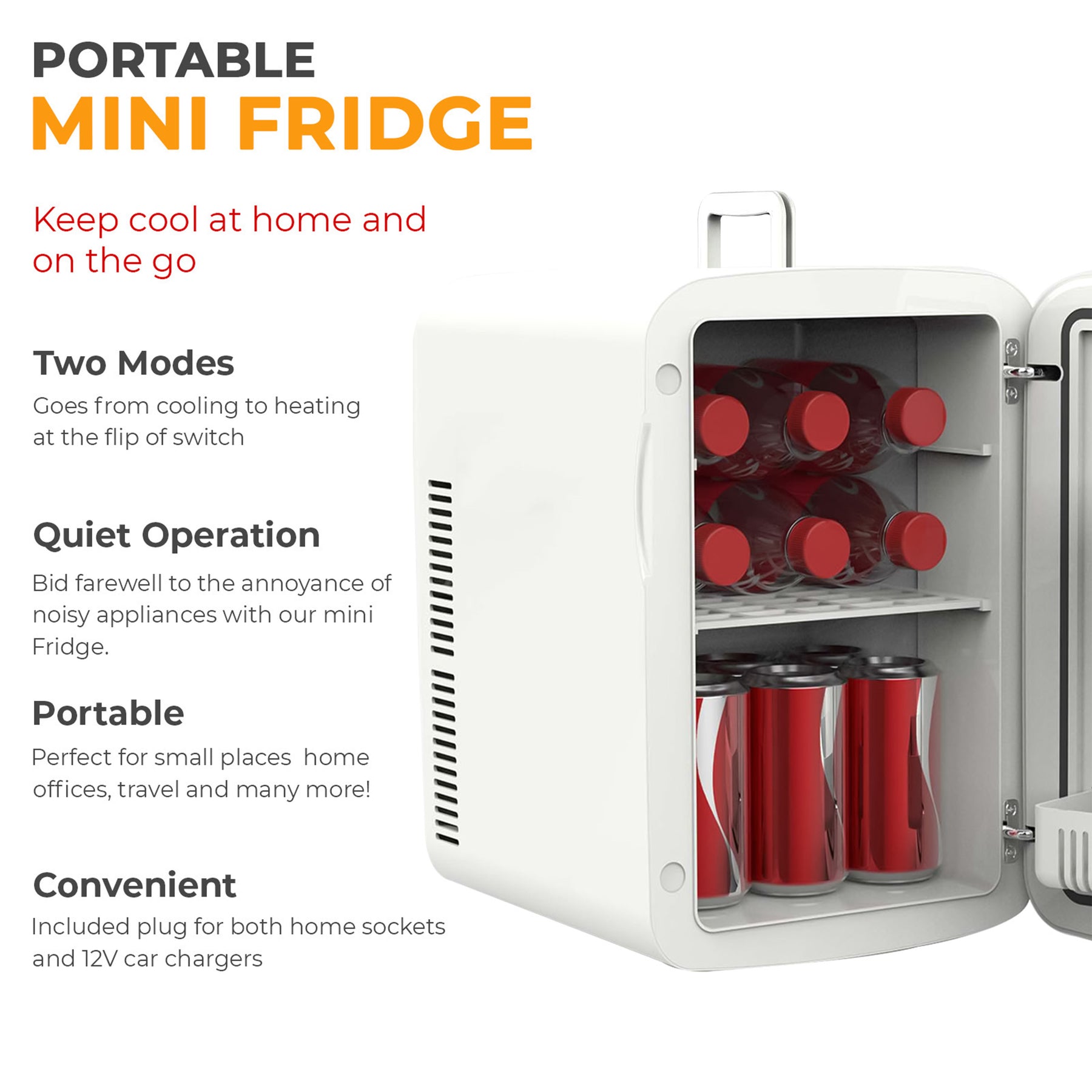 This mini-fridge is a fun and stylish way to keep your drinks cold and food warm. Perfect for your office, home bar, or RV. It is lightweight, compact, and portable, featuring a self-locking recessed door handle and a 10L capacity. It can also keep your makeup and skincare products fresh longer while giving your skin tone a cooling effect.