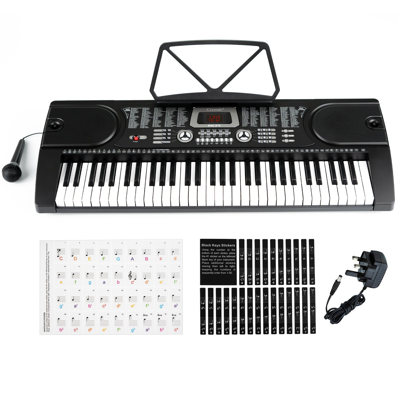 61 keys electronic teaching keyboard digital music piano is ideal for beginners with its built-in intelligent guide features and fun functions which help to develop music skills and take your musical talent to the next level. It has features of easy to read LCD screen and clear labelling, making music with this keyboard is fund hassle-free. Impress all your friends and family by mastering different songs using the unique guide functions which include one-key, follow and ensemble tutorials. The innovative follow function will wait until you play the notes correctly before continuing, acting as a virtual music teacher. This keyboard is perfect for those taking their first steps in music and is a great way to develop their knowledge and skills whilst having fun. Our Crystals 61 keys electronic piano also included is a detachable rest, perfect for displaying your sheet music or notebooks in a practical and easy-to-read way. Dimensions/Size: Length 85cm x Width 32cm x Height 11cm