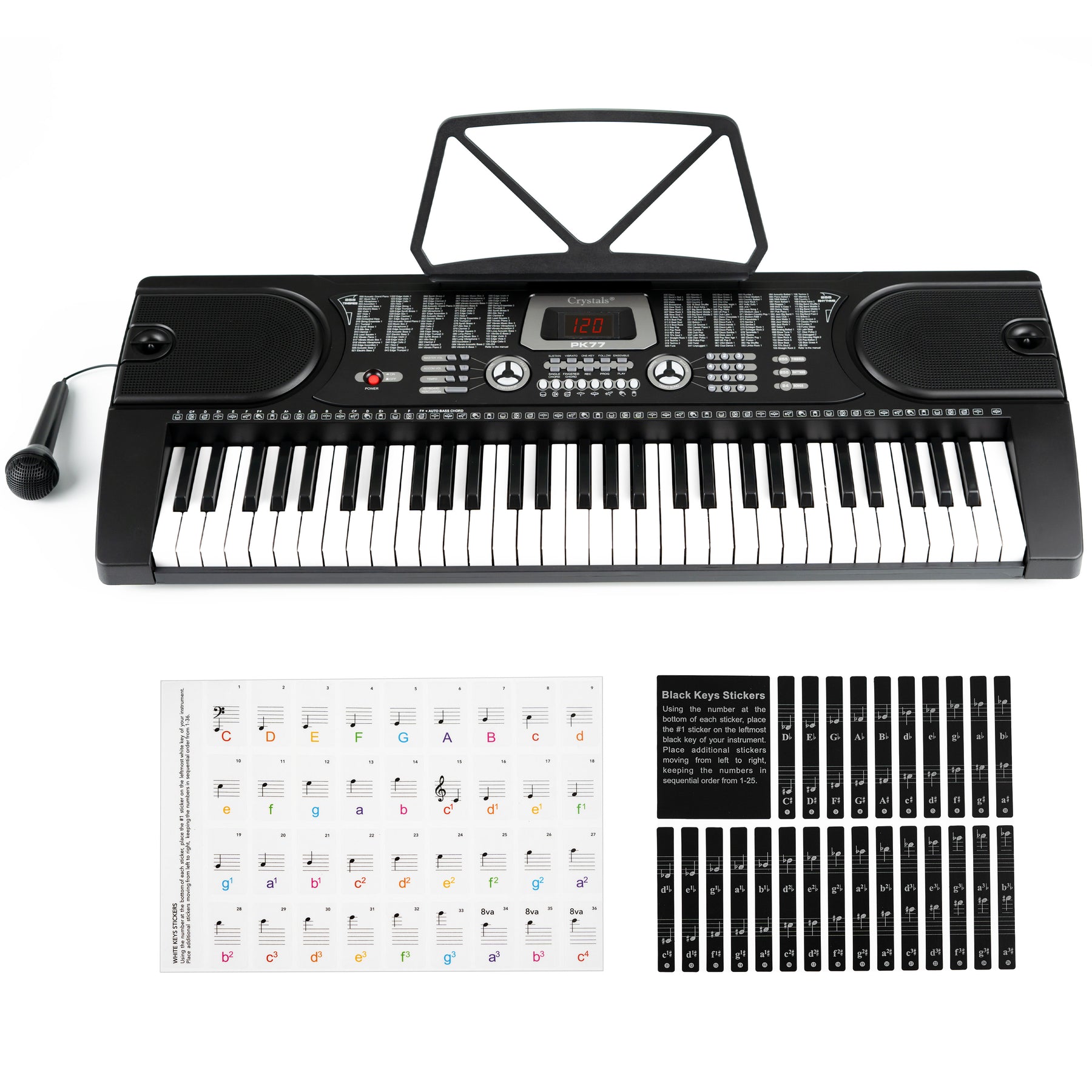 61 keys electronic teaching keyboard digital music piano is ideal for beginners with its built-in intelligent guide features and fun functions which help to develop music skills and take your musical talent to the next level. It has features of easy to read LCD screen and clear labelling, making music with this keyboard is fund hassle-free. Impress all your friends and family by mastering different songs using the unique guide functions which include one-key, follow and ensemble tutorials. The innovative follow function will wait until you play the notes correctly before continuing, acting as a virtual music teacher. This keyboard is perfect for those taking their first steps in music and is a great way to develop their knowledge and skills whilst having fun. Our Crystals 61 keys electronic piano also included is a detachable rest, perfect for displaying your sheet music or notebooks in a practical and easy-to-read way. Dimensions/Size: Length 85cm x Width 32cm x Height 11cm