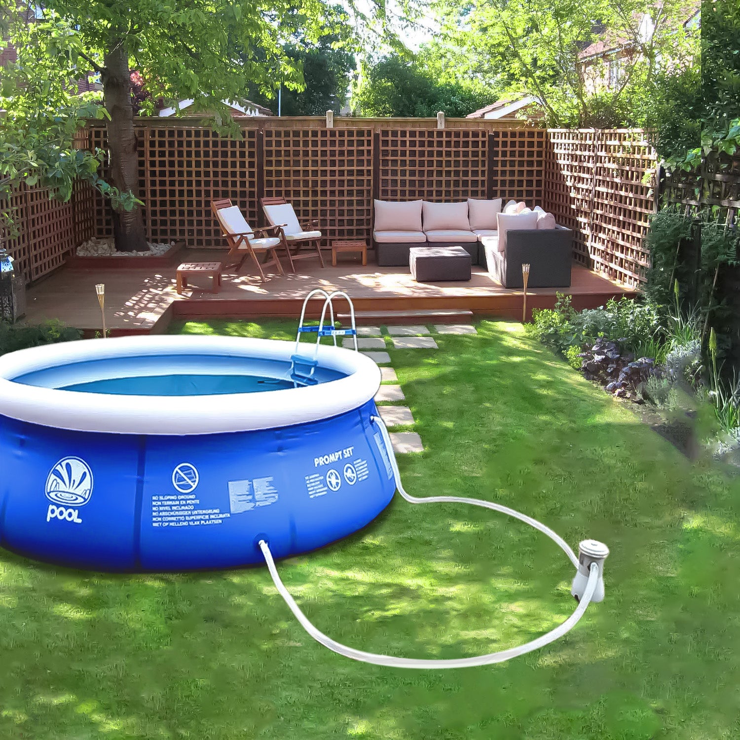 This ultimate summer accessory for your garden has arrived! This incredible inflatable pool takes less than 10 minutes to set up and is made from durable material, which ensures high resistance to sun, abrasion and chemicals. This pool is very easy to use - just select a level surface, inflate the top ring and watch the pool rise as you fill it with water.
