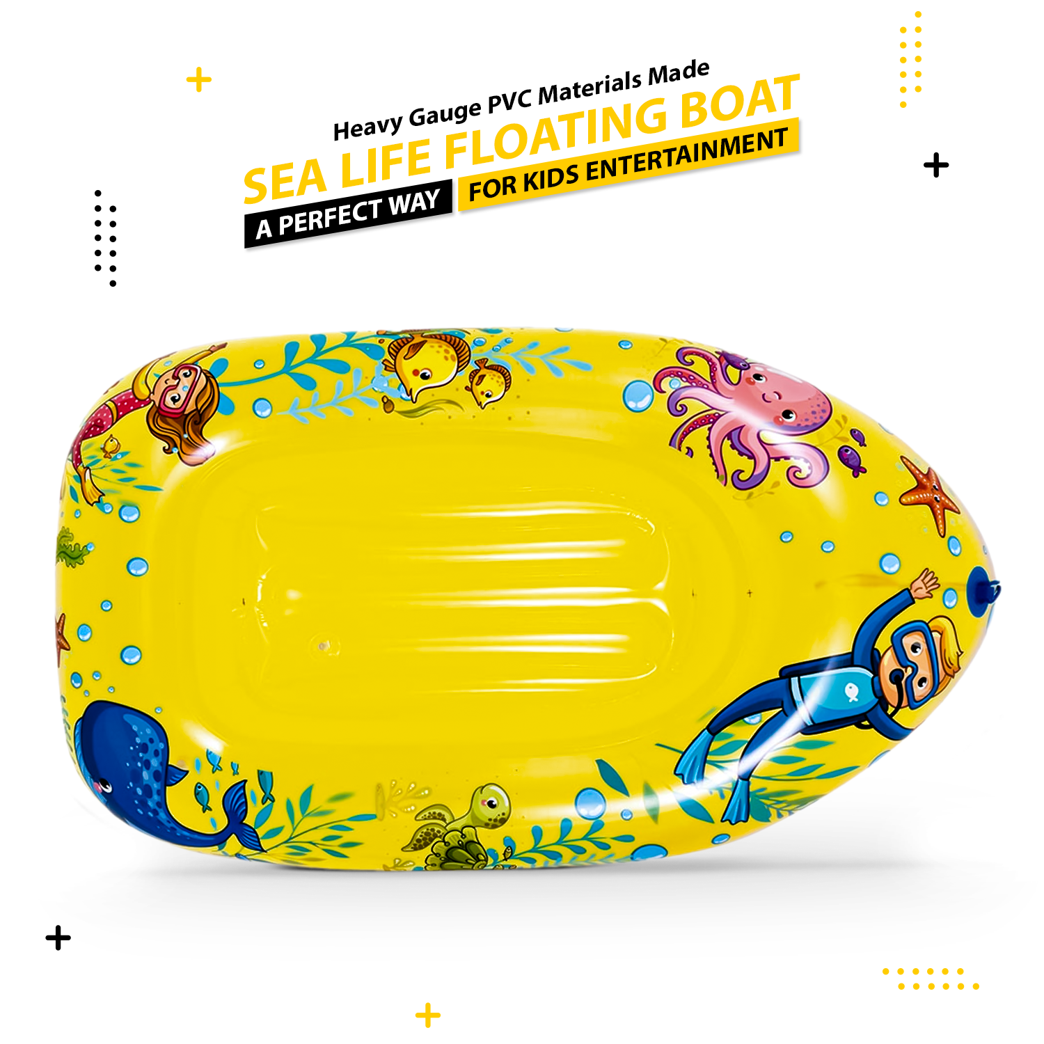 Children Kid's inflatable sea life floating boat is perfect for playing in paddling pools and is a great way to keep your kids entertained, featuring a tug rope for pulling and towing allowing you to pull the inflatable water board around a paddling pool with ease while your kids have fun. It has features with heavy gauge PVC materials that provide a strong and stable inflatable boat shape. Inflatable kid's lifeboat is easy to inflate and deflate, it can be inflated by using a hand/foot pump, or electric pump and is simple enough to inflate using good old-fashioned lung power. The inflatable boat comes in 2 different colours, blue and green which will be randomly picked and sent on purchase.
