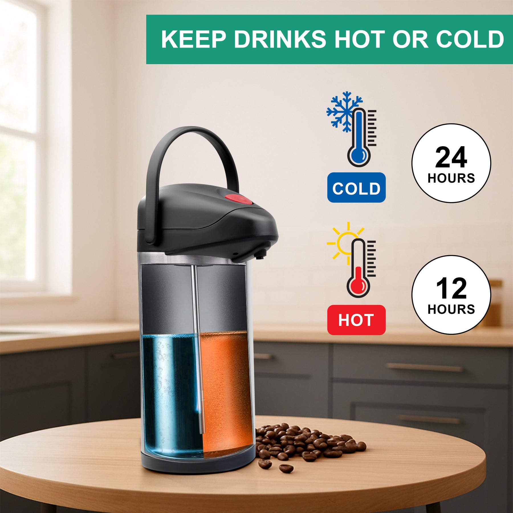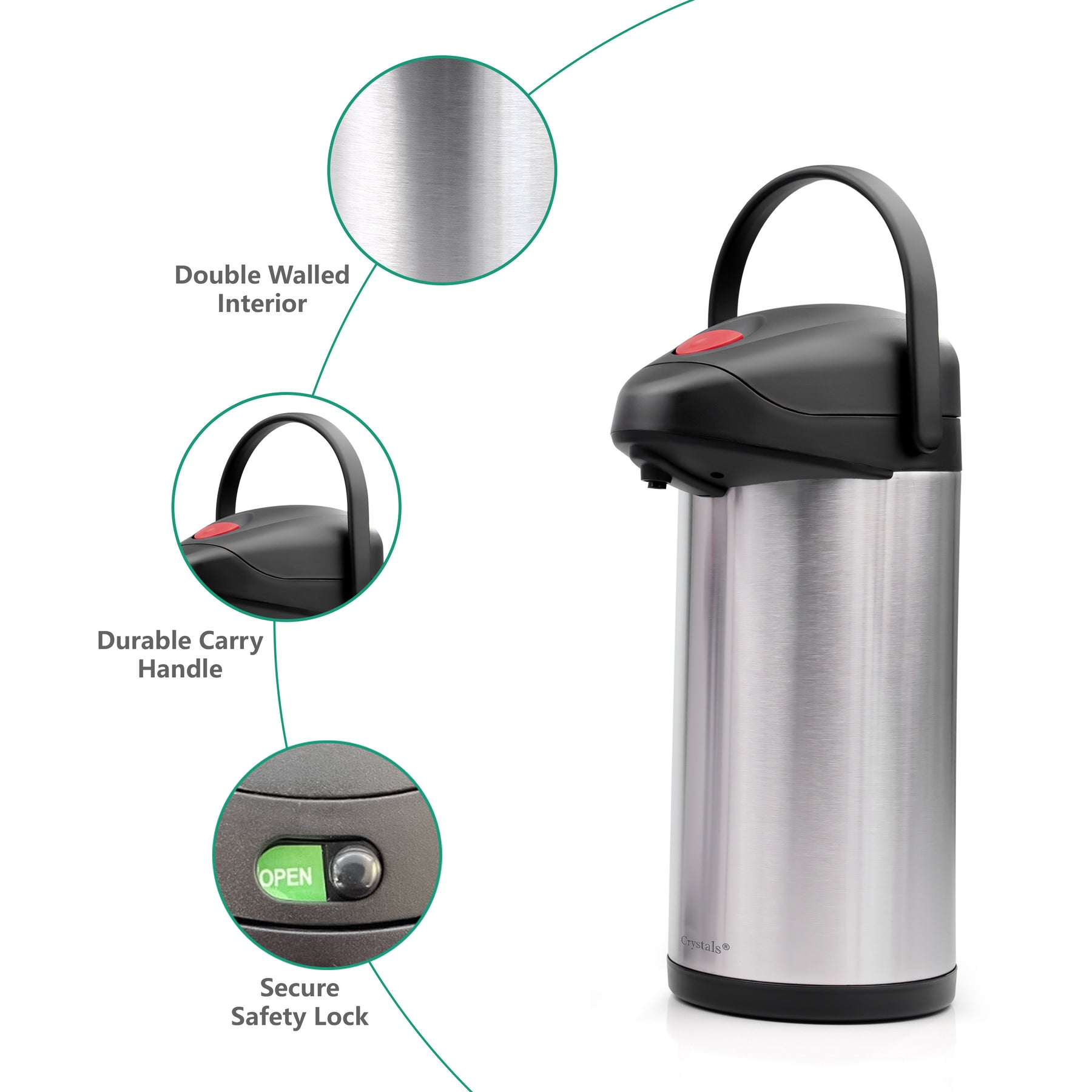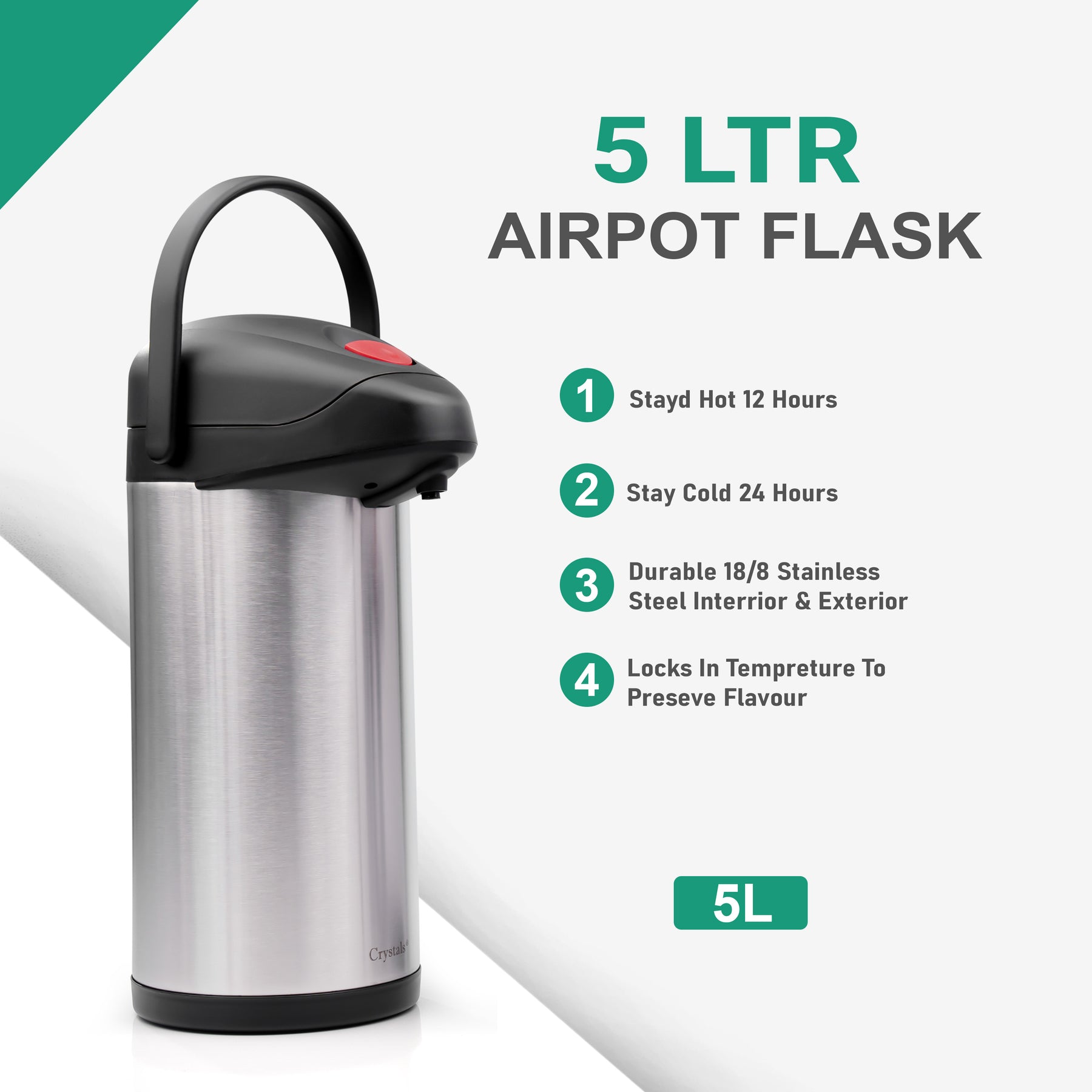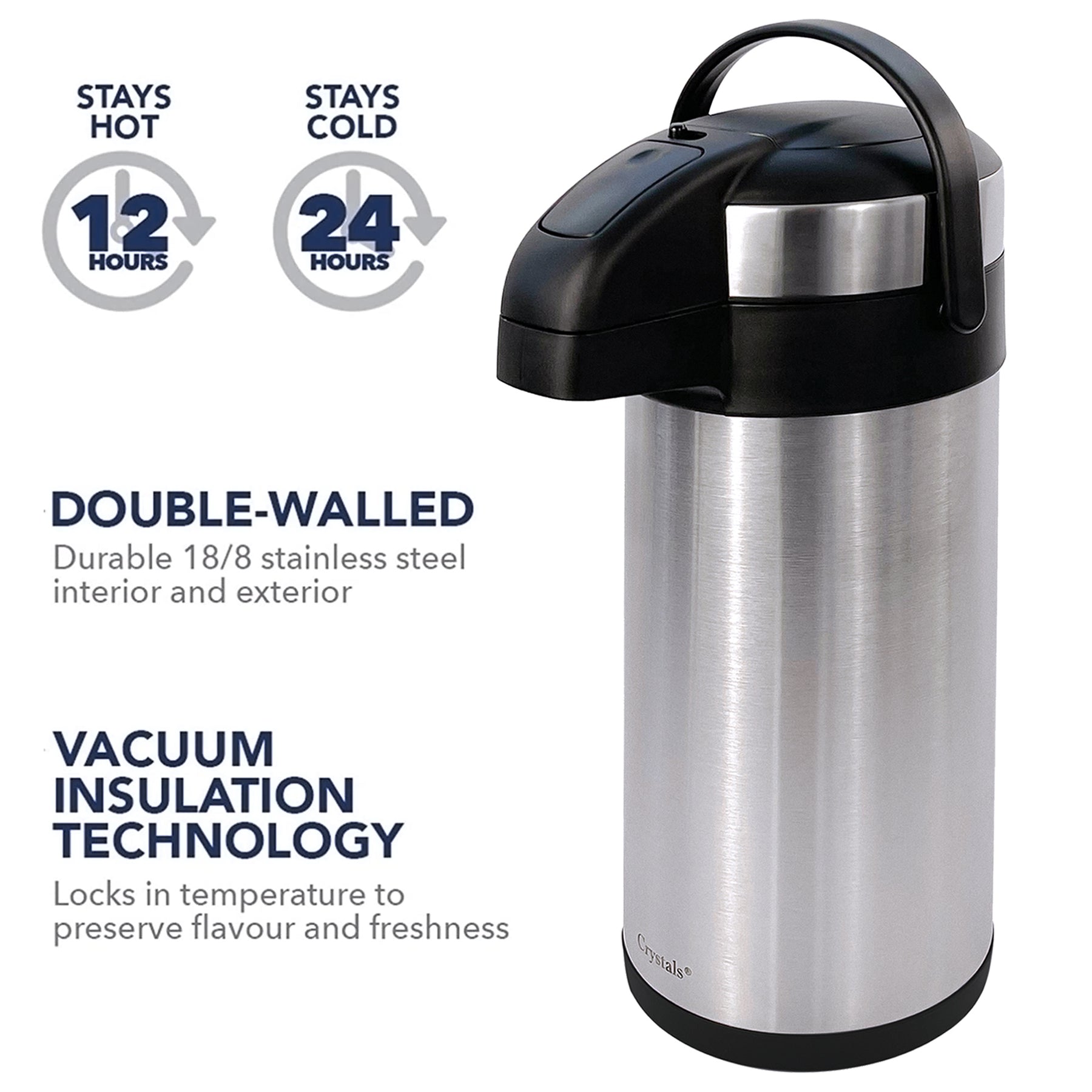 Keep every drink at just the right temperature with a little help from the 2L Vacuum Insulated Air Pot. An effective way to keep hot drinks hot and cold drinks cold for hours on end. Constructed from strong double-walled high-grade stainless steel with a wide base for stability, the pot can insulate a wide range of liquids including tea, coffee, water, hot and cold milk, juice, hot chocolate and gravy. Vacuum insulation technology with a release button not only locks in heat and cold but also flavour and freshness.